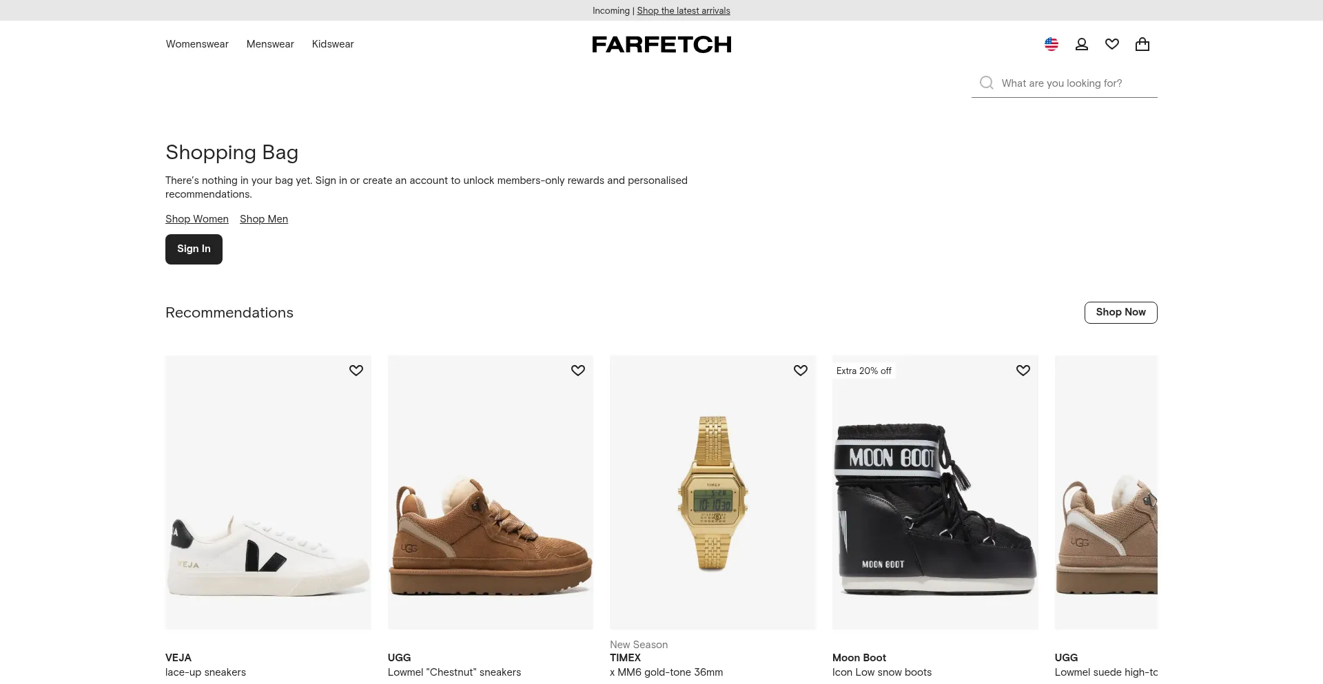 分析表明 secure.farfetch.com 作为电子商务平台运营,促进商品或服务的在线交易。该网站实现了购物车功能、支付处理系统和产品目录功能,这些是商业零售运营的典型特征。