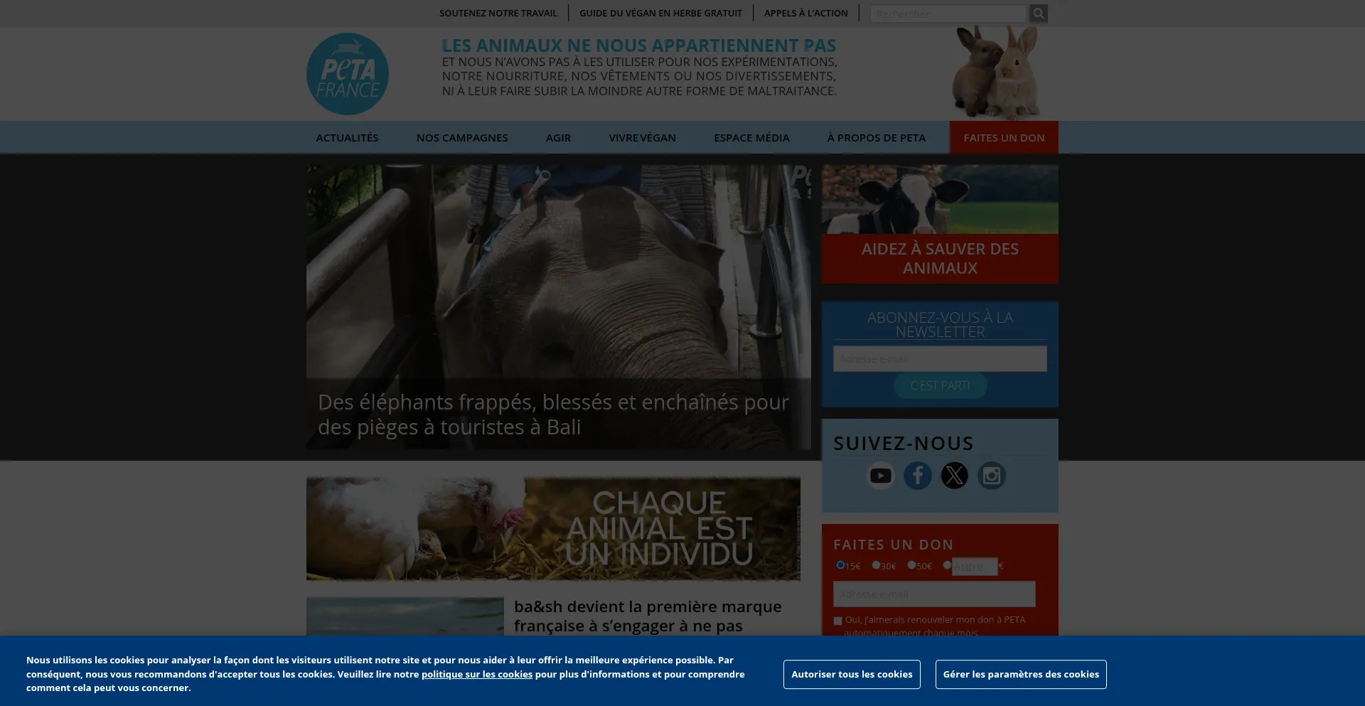Les campagnes de PETA visent à mettre fin à l'utilisation des animaux pour la nourriture, les vêtements, le divertissement ou encore l'expérimentation.
