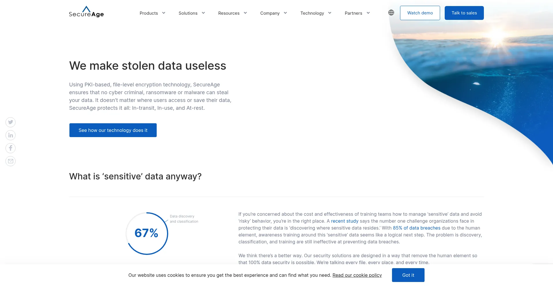 网站上存在社交媒体链接表明 secureage.com 在社交媒体上维护官方账户,这是可信度和参与度的积极信号。