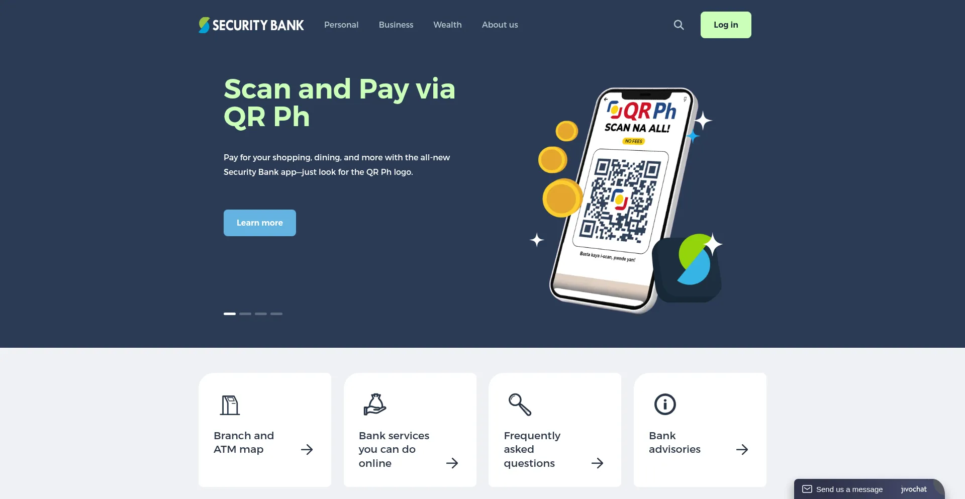 securitybankph.com 使用 Bootstrap,这是一个广泛采用的开源响应式网页开发框架。Bootstrap 通过标准化组件和样式实现移动友好界面的高效创建。