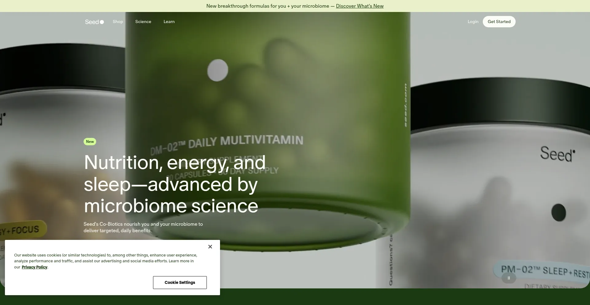 该网站实现符合GDPR或CCPA等隐私法规的cookie同意机制。这表明 seed.com 遵守数据保护标准并为用户提供对个人数据收集实践的控制。