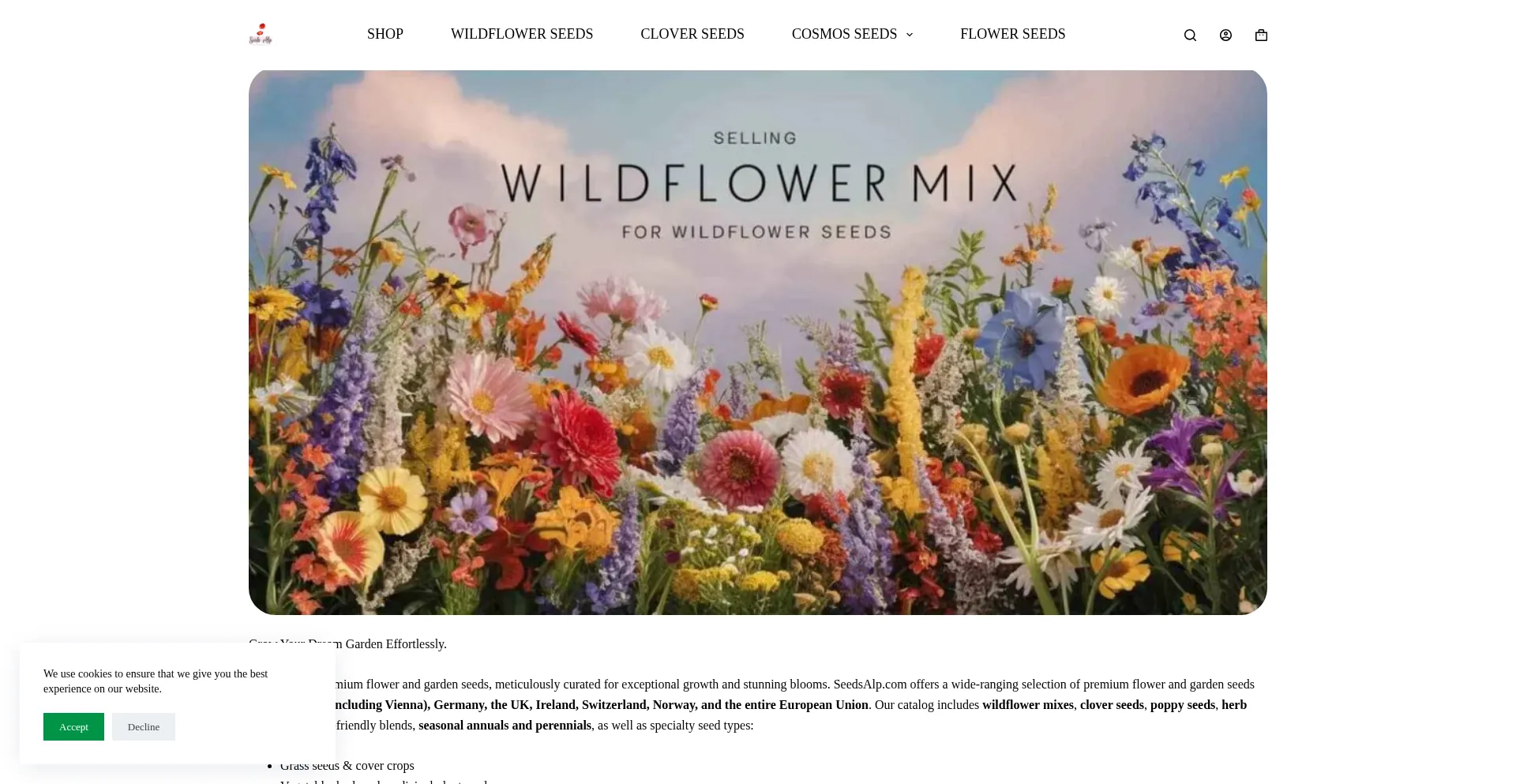 SeedsAlp: Online Flower Seeds Shop in Austria & UK. Buy Wildflower Seeds Bulk (1 kg–10 kg) red & white Clover Cosmos Cornflower. Free delivery EU, UK expert planting advice