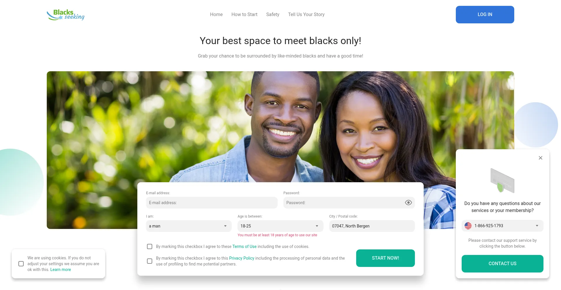 该网站实现数据收集表单,请求个人信息,包括姓名、电子邮件地址、电话号码或其他敏感详细信息。用户应验证 seekingblacks.com 的合法性并在提交个人数据前查看隐私政策。