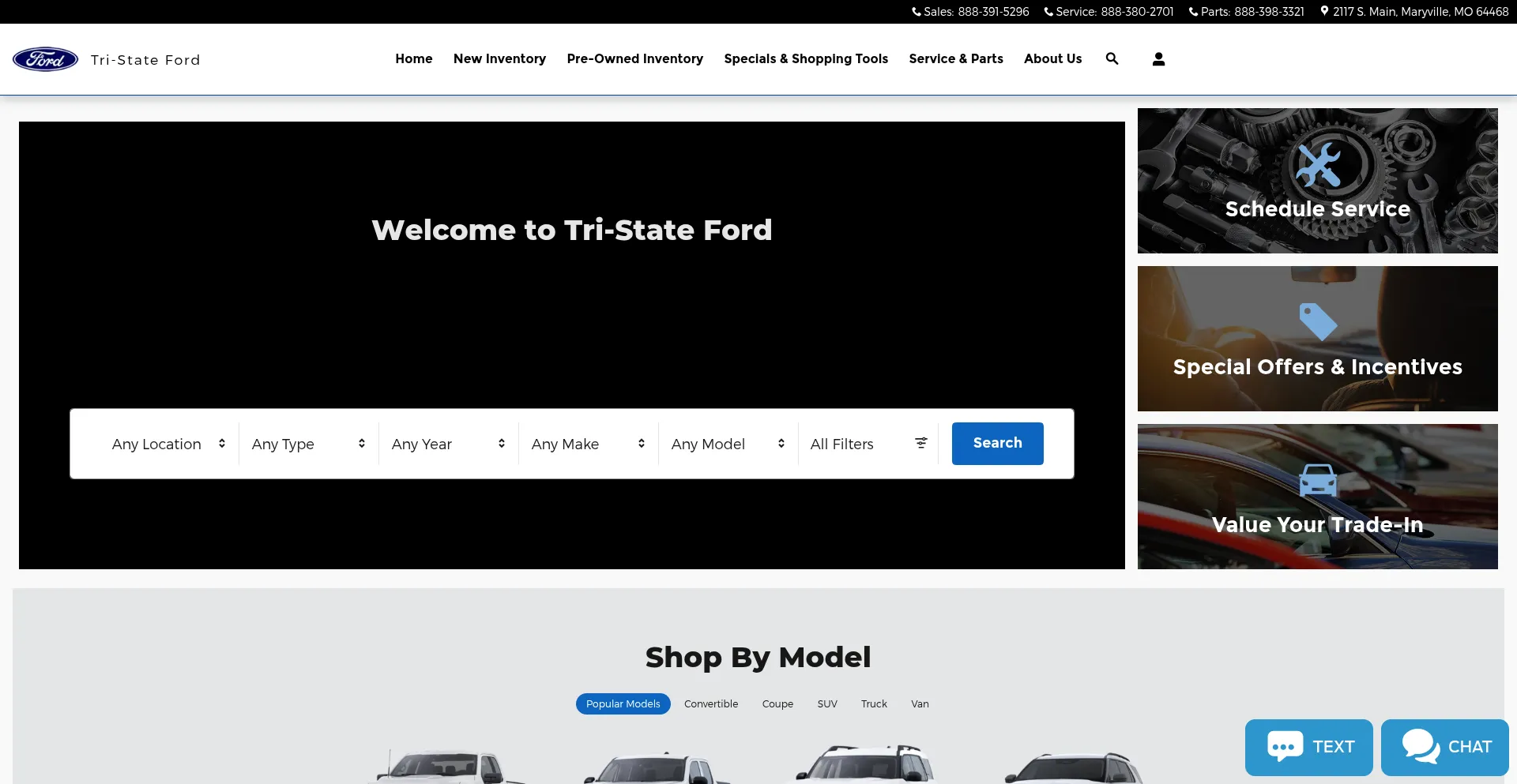 Search Tri-State Ford's online Ford dealership and browse our comprehensive selection of new truck, SUV, crossover, cargo van and coupe. Buy a new or used Ford in Maryville at T...