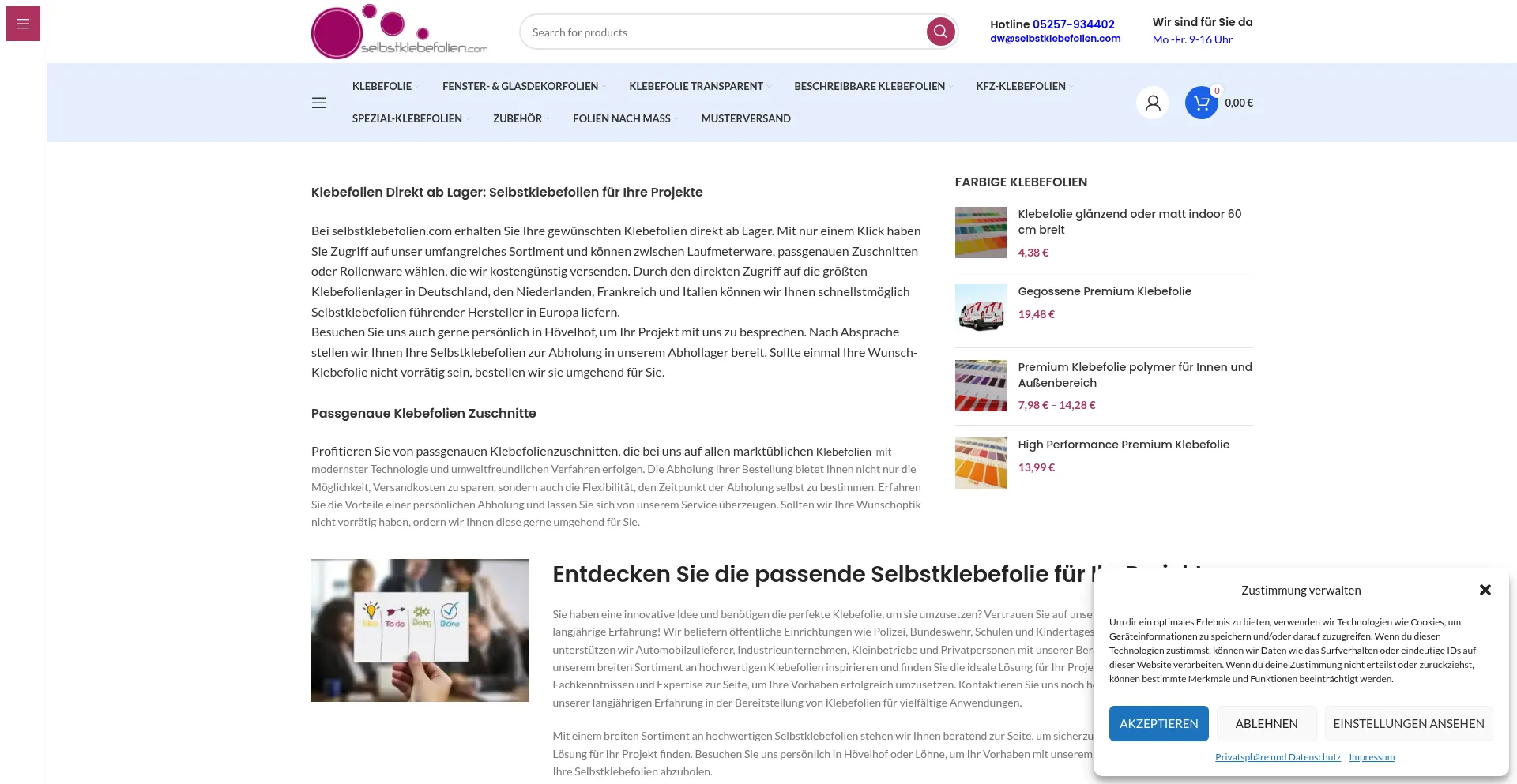 分析表明 selbstklebefolien.com 作为电子商务平台运营,促进商品或服务的在线交易。该网站实现了购物车功能、支付处理系统和产品目录功能,这些是商业零售运营的典型特征。