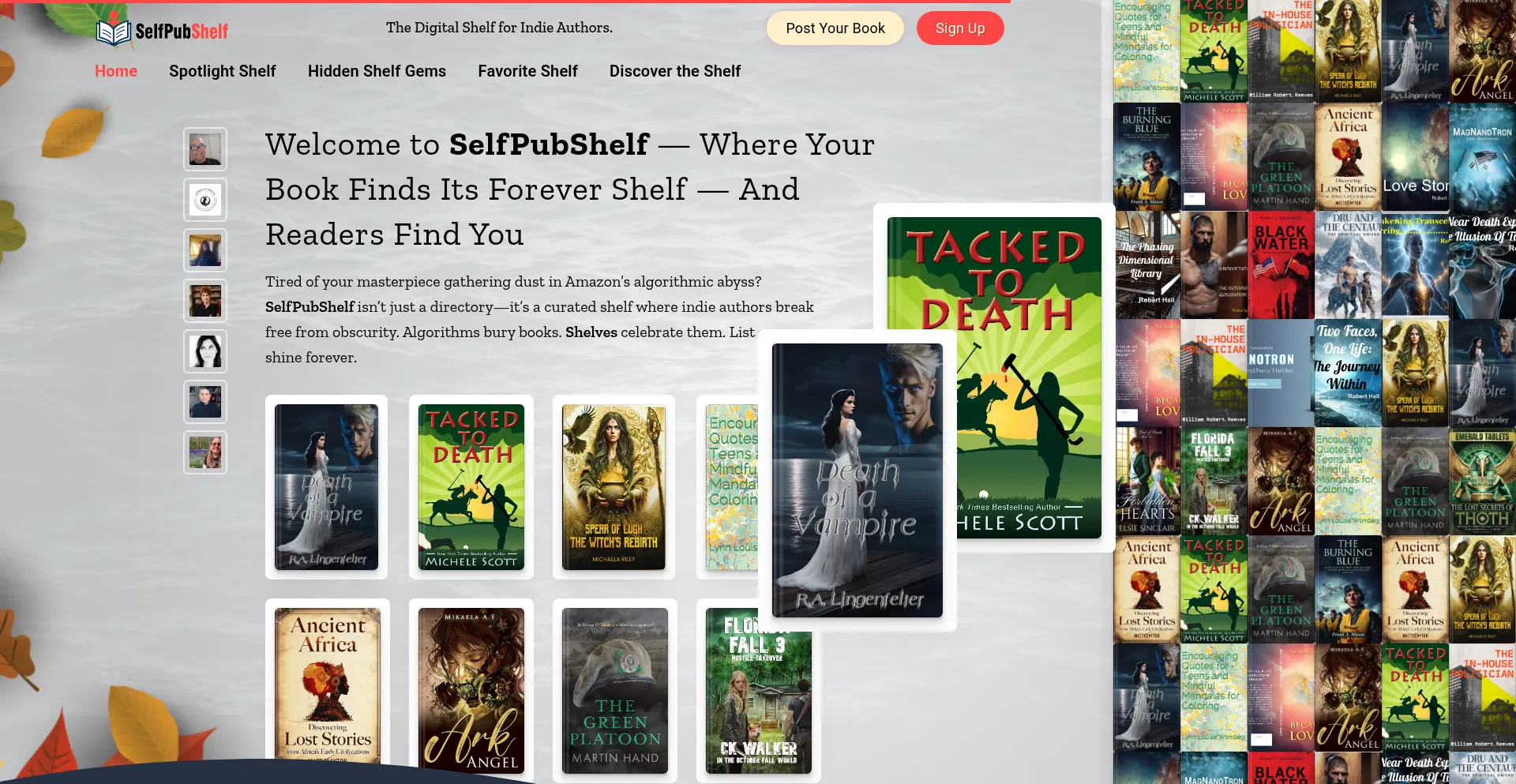 Showcase your self-published books or discover great indie reads. Lifetime listings, author shelves, and spotlight promotion for Kindle, ebooks, and more.