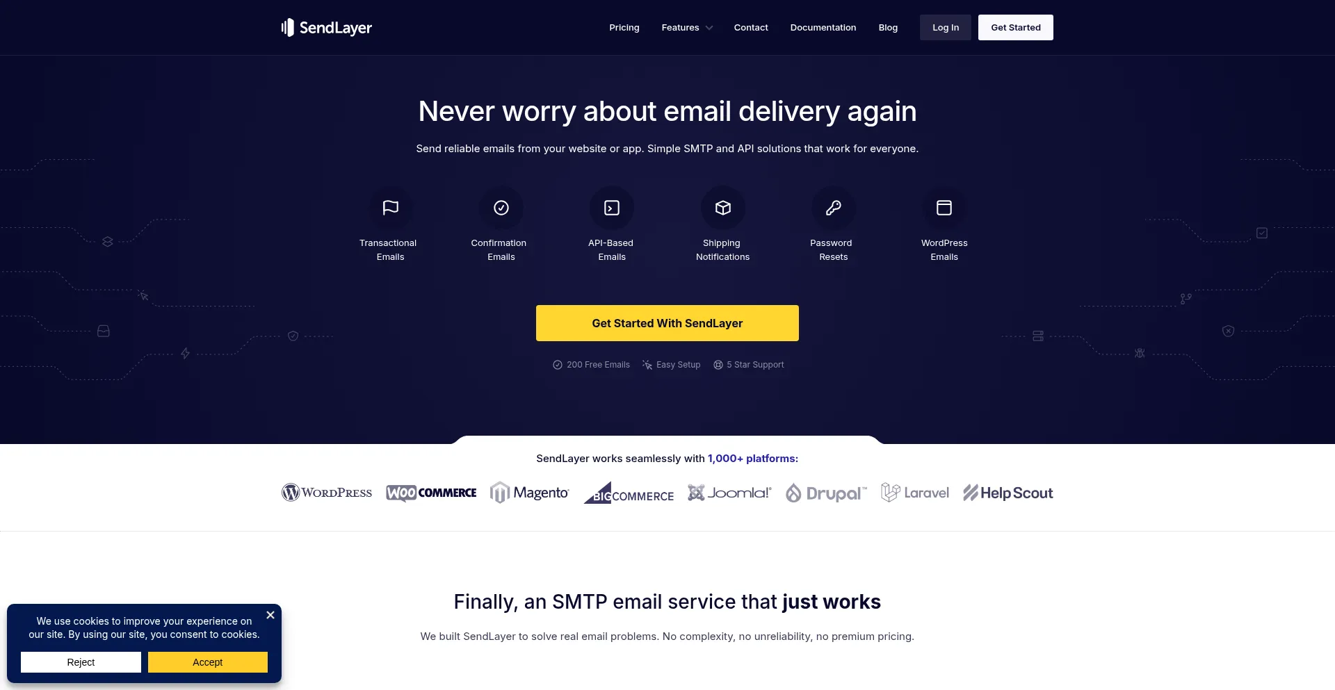 Easily connect and send your website emails with our SMTP relay and email API for maximum deliverability, reliability, and scalability.