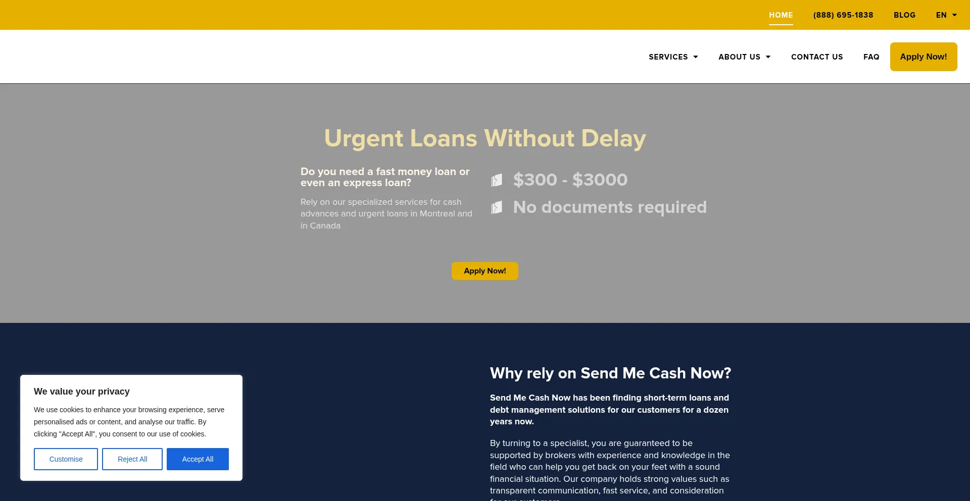 Send Me Cash Now have professional loan brokers that work on your behalf, apply online and get fast cash advance, anywhere in Canada. Contact us!