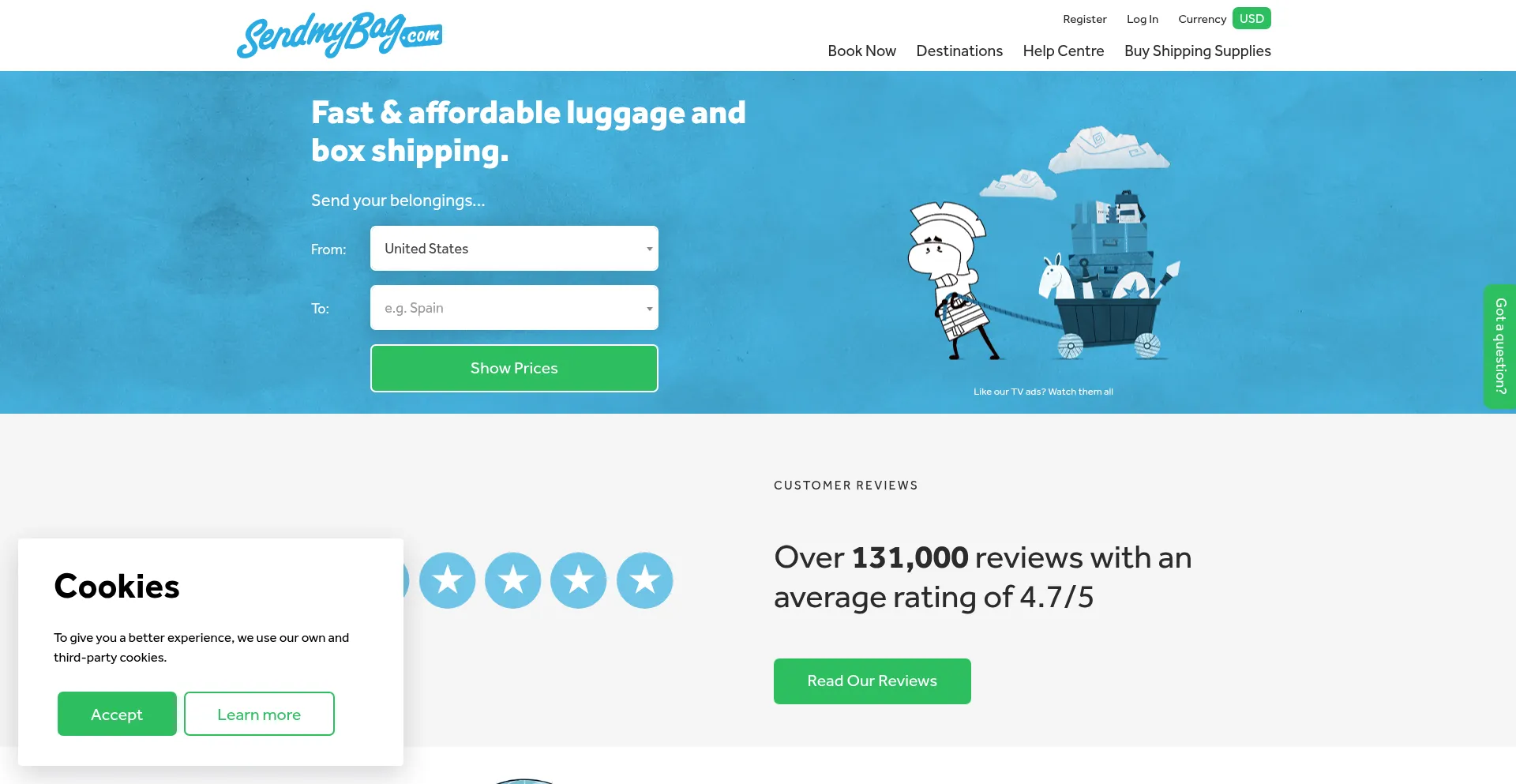 1M+ moves completed by the luggage shipping and international delivery experts. Ship bags & boxes door to door today. Quick online quote & customer support available 24hrs.