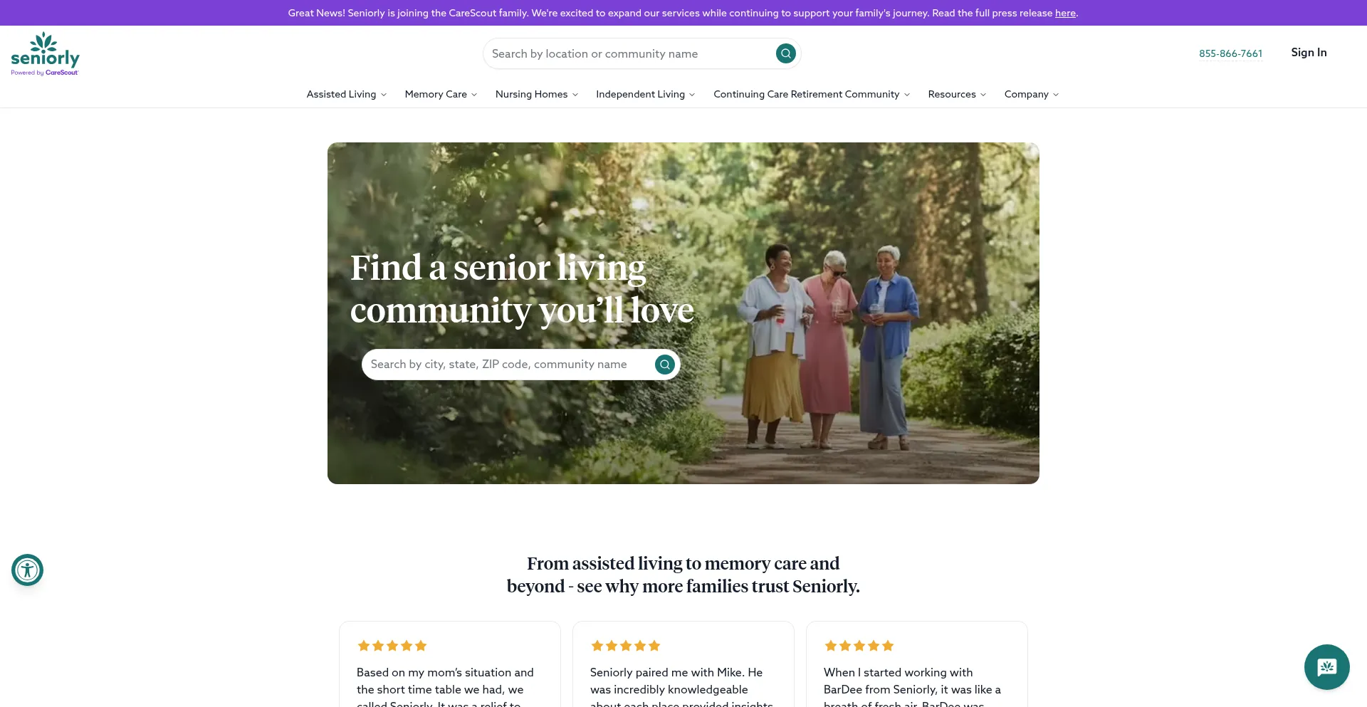 网站上存在社交媒体链接表明 seniorly.com 在社交媒体上维护官方账户,这是可信度和参与度的积极信号。