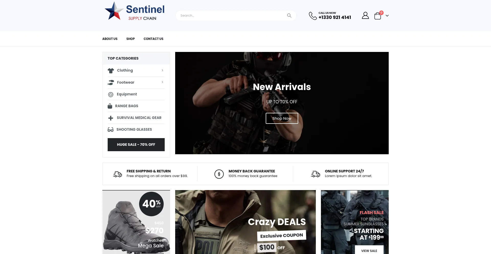 分析表明 sentinelsupply.us 作为电子商务平台运营,促进商品或服务的在线交易。该网站实现了购物车功能、支付处理系统和产品目录功能,这些是商业零售运营的典型特征。