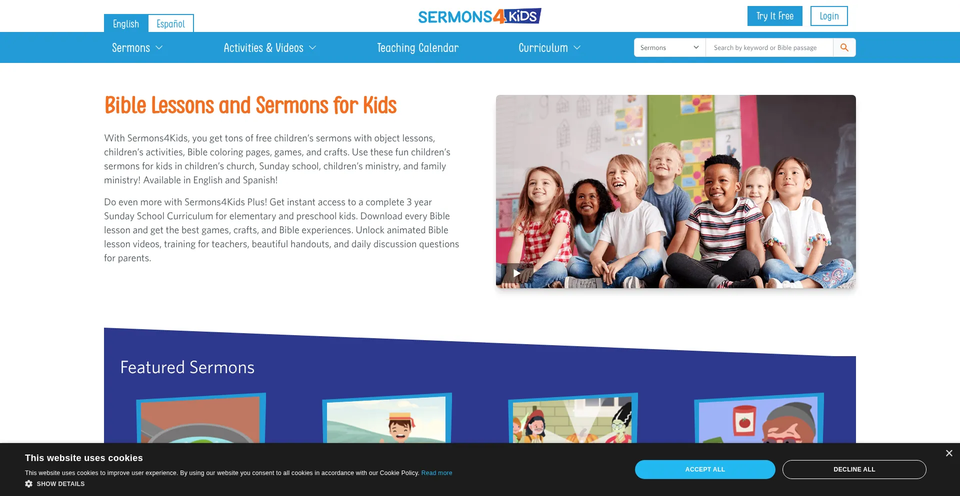 该网站实现符合GDPR或CCPA等隐私法规的cookie同意机制。这表明 sermons4kids.com 遵守数据保护标准并为用户提供对个人数据收集实践的控制。