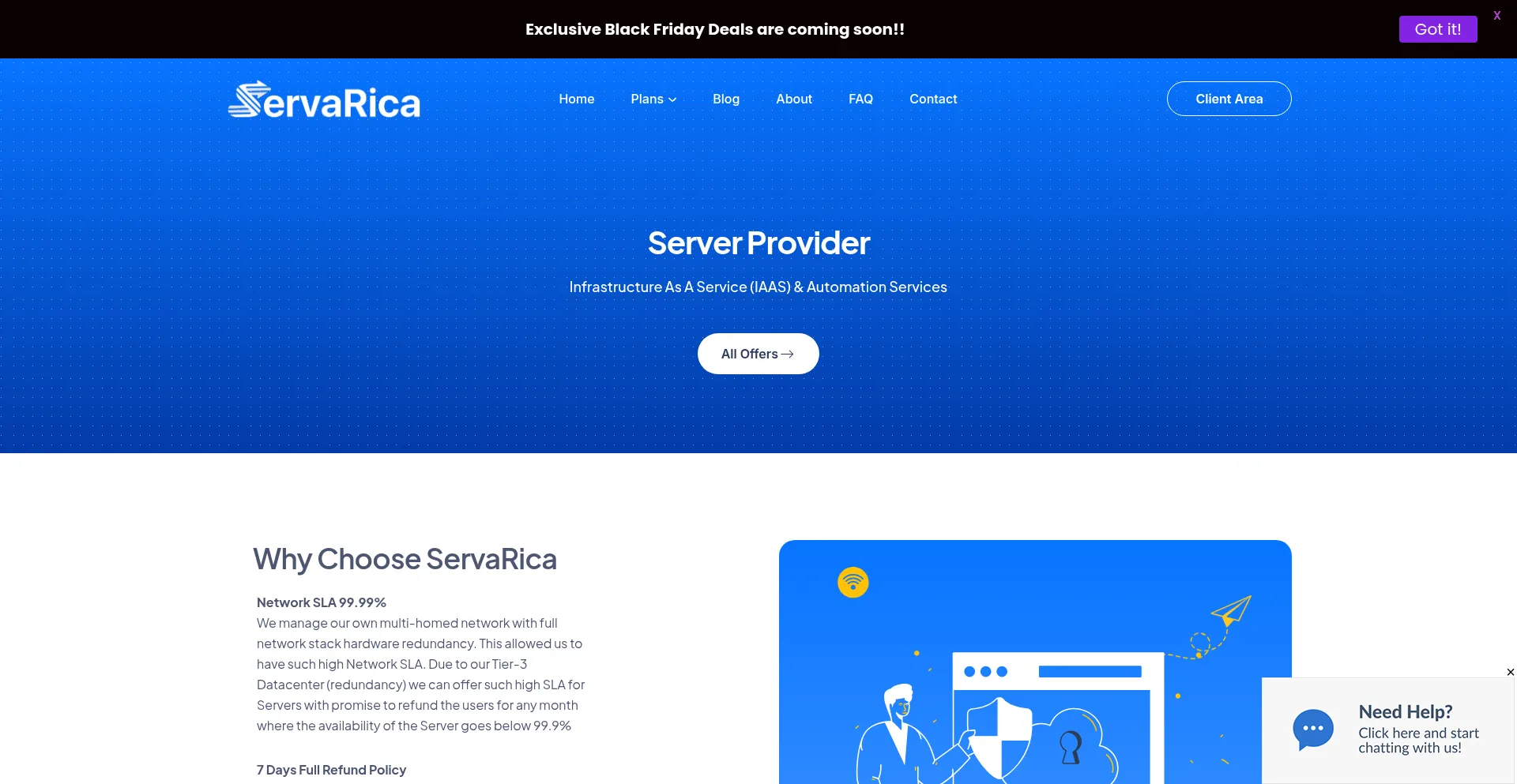Server Provider Infrastructure As A Service (IAAS) & Automation Services All Offers Why Choose ServaRica Network SLA 99.99% We manage our own multi-homed network with full netwo...