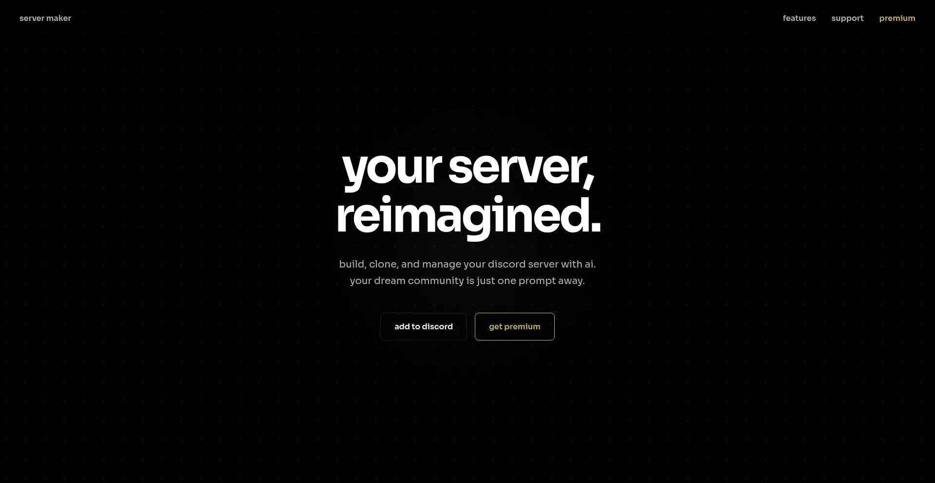 server maker is a powerful discord bot that uses ai to build, clone, edit, and manage your server. create a server from a text prompt, apply themes, and automate moderation.