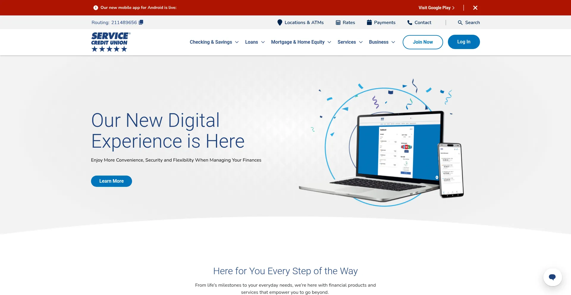 servicecu.org 提供 Android 设备移动应用程序,表明平台存在已扩展到网络服务之外。