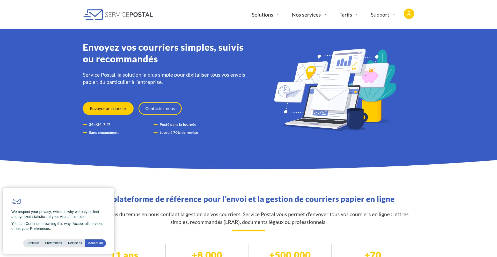 Service Postal, la solution la plus sûre et flexible pour l'envoi de vos courriers en ligne perso, pro ou légaux en ligne.