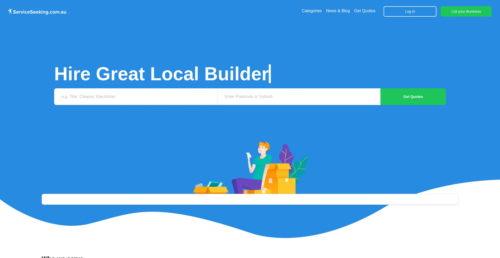 该网站实现数据收集表单,请求个人信息,包括姓名、电子邮件地址、电话号码或其他敏感详细信息。用户应验证 serviceseeking.com.au 的合法性并在提交个人数据前查看隐私政策。