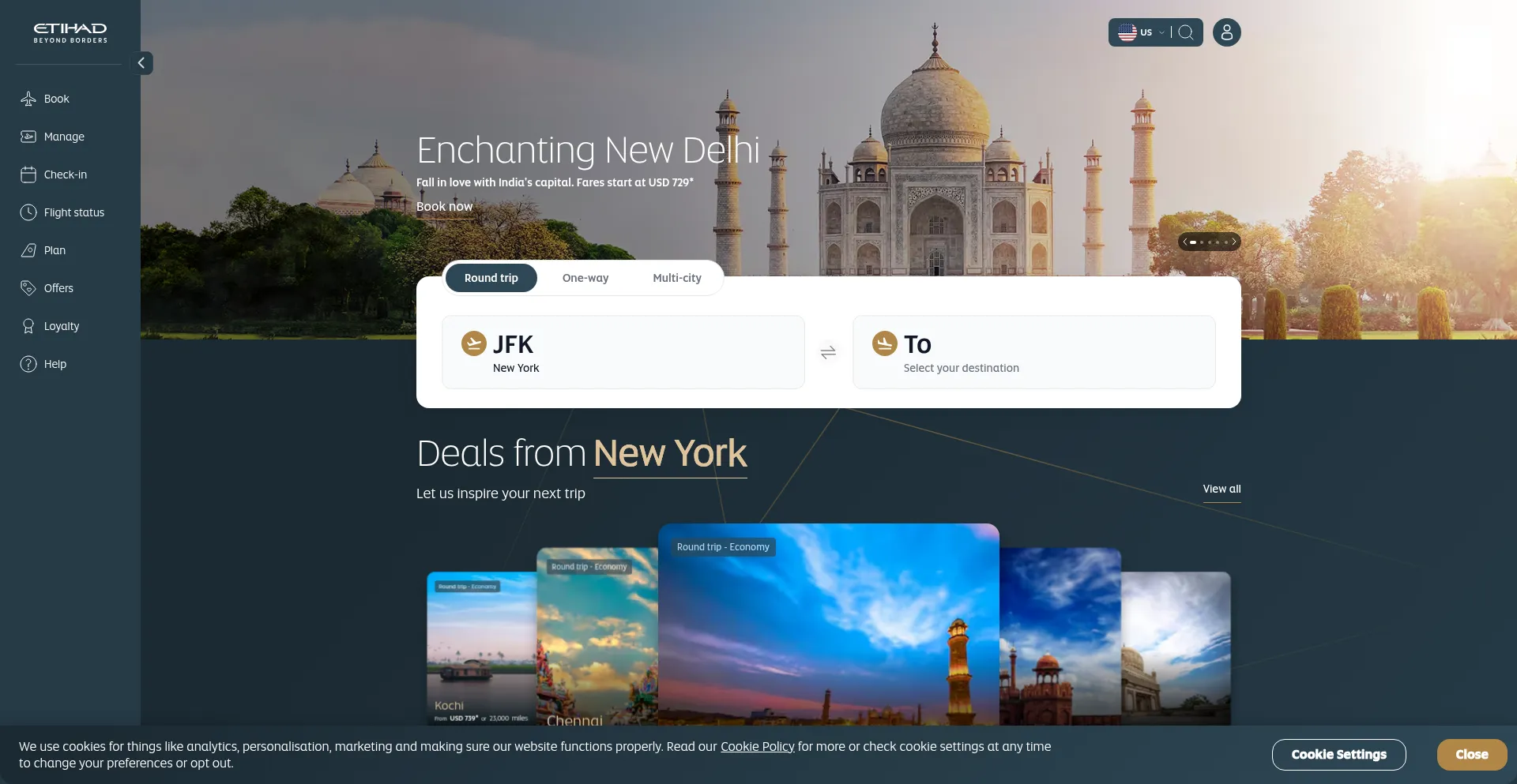 Book your next flight with Etihad Airways. Travel to worldwide destinations and look forward to a premium travel experience with Etihad Airways.