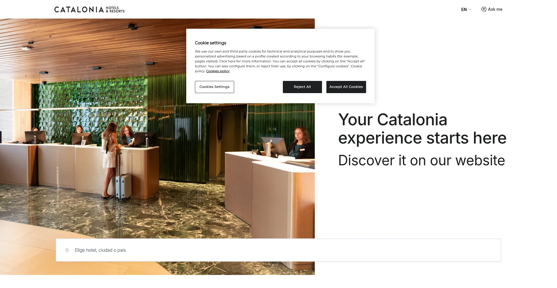 该网站实现符合GDPR或CCPA等隐私法规的cookie同意机制。这表明 servicios.cataloniahotels.com 遵守数据保护标准并为用户提供对个人数据收集实践的控制。