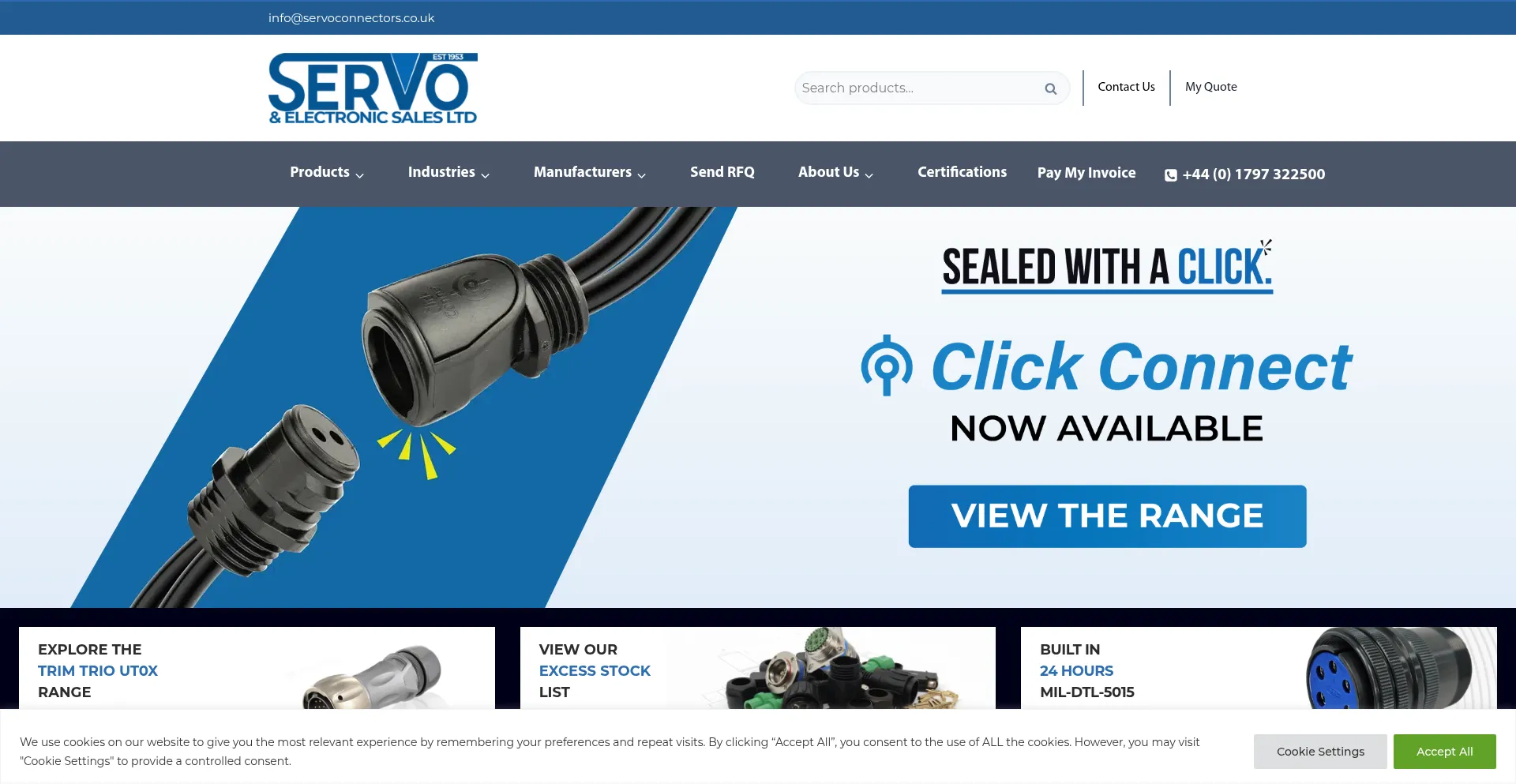 该网站实现符合GDPR或CCPA等隐私法规的cookie同意机制。这表明 servoconnectors.co.uk 遵守数据保护标准并为用户提供对个人数据收集实践的控制。