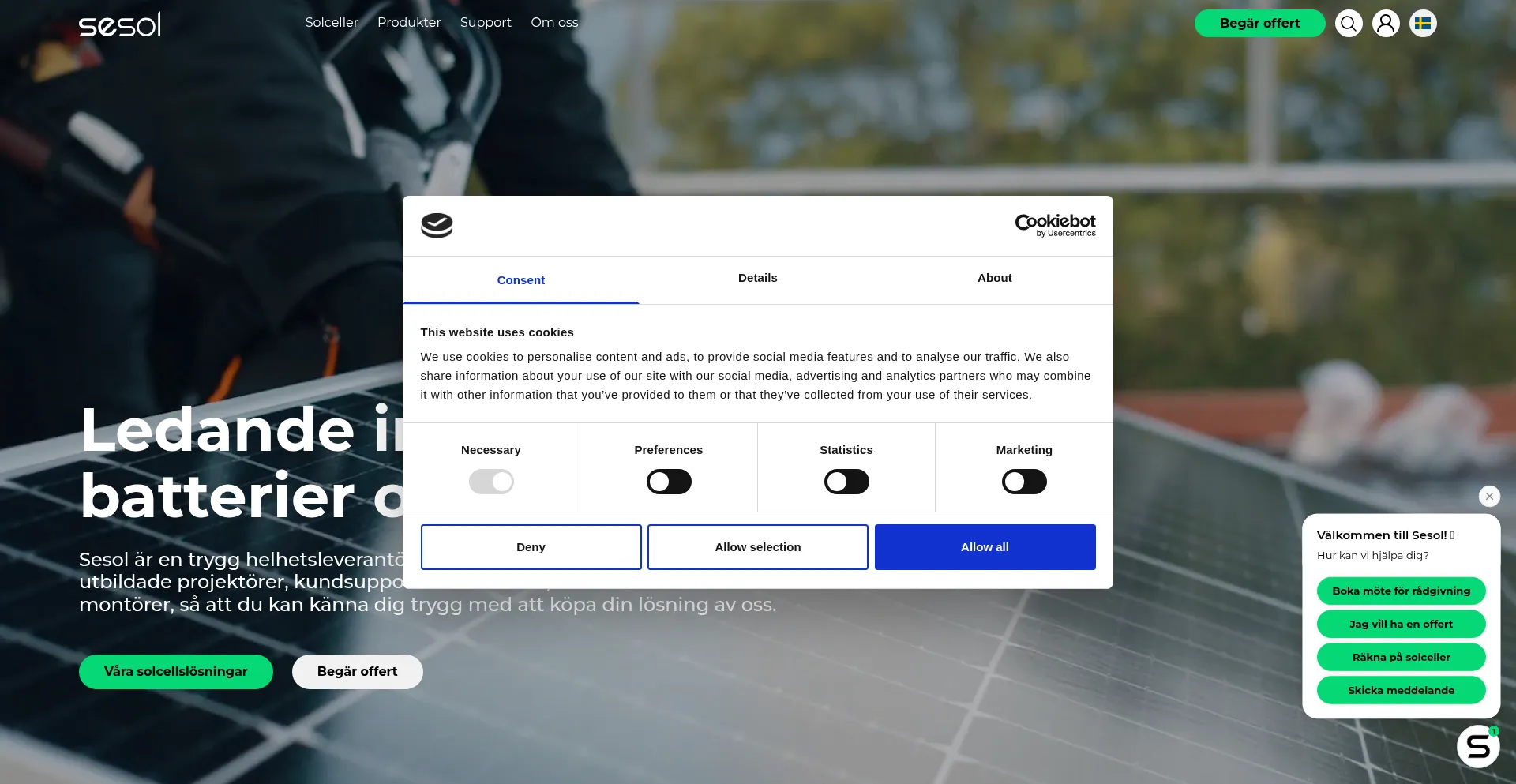 Sesol är ledande inom solceller, batterier och laddare till elbilar. Med egna certifierade montörer och elektriker gör vi det tryggt och anpassat för dig.