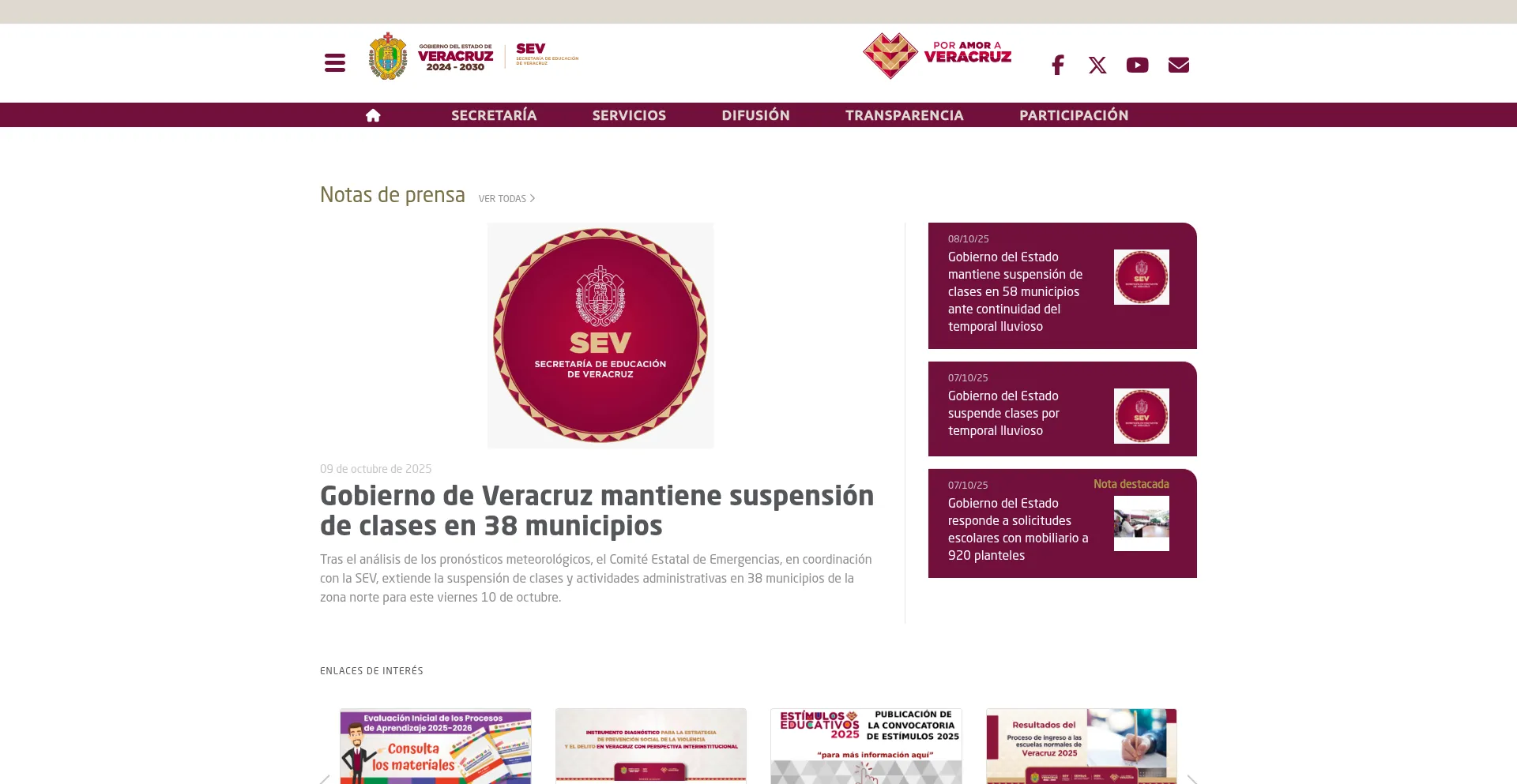 网站上存在社交媒体链接表明 sev.gob.mx 在社交媒体上维护官方账户,这是可信度和参与度的积极信号。
