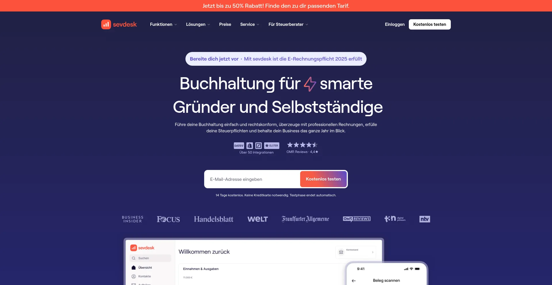 sevdesk Buchhaltungssoftware: einfach. intuitiv. schnell. Spare jetzt 50 % auf alle Tarife – nur für kurze Zeit. ▻ Jetzt kostenlos testen!