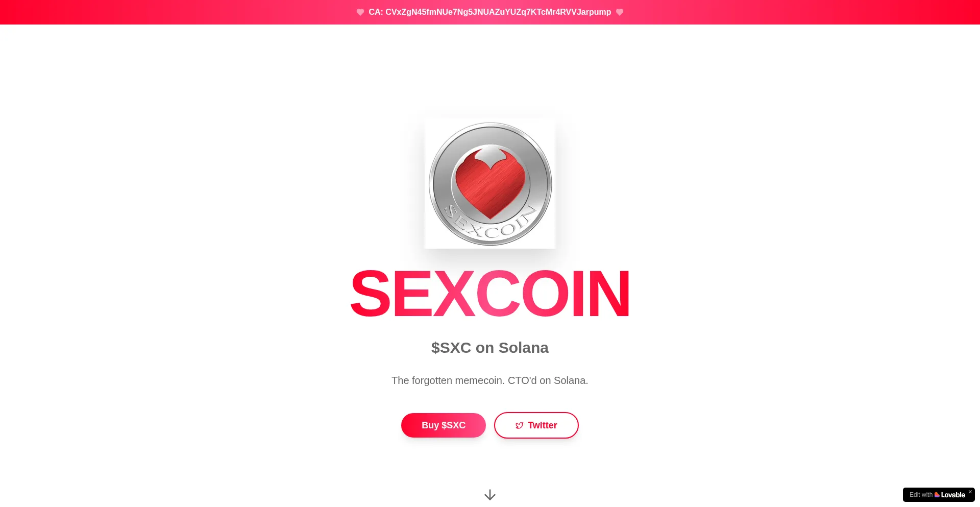 Sexcoin is back. Originally created in 2017 for the adult film industry, now resurrected and launched on the Solana blockchain.