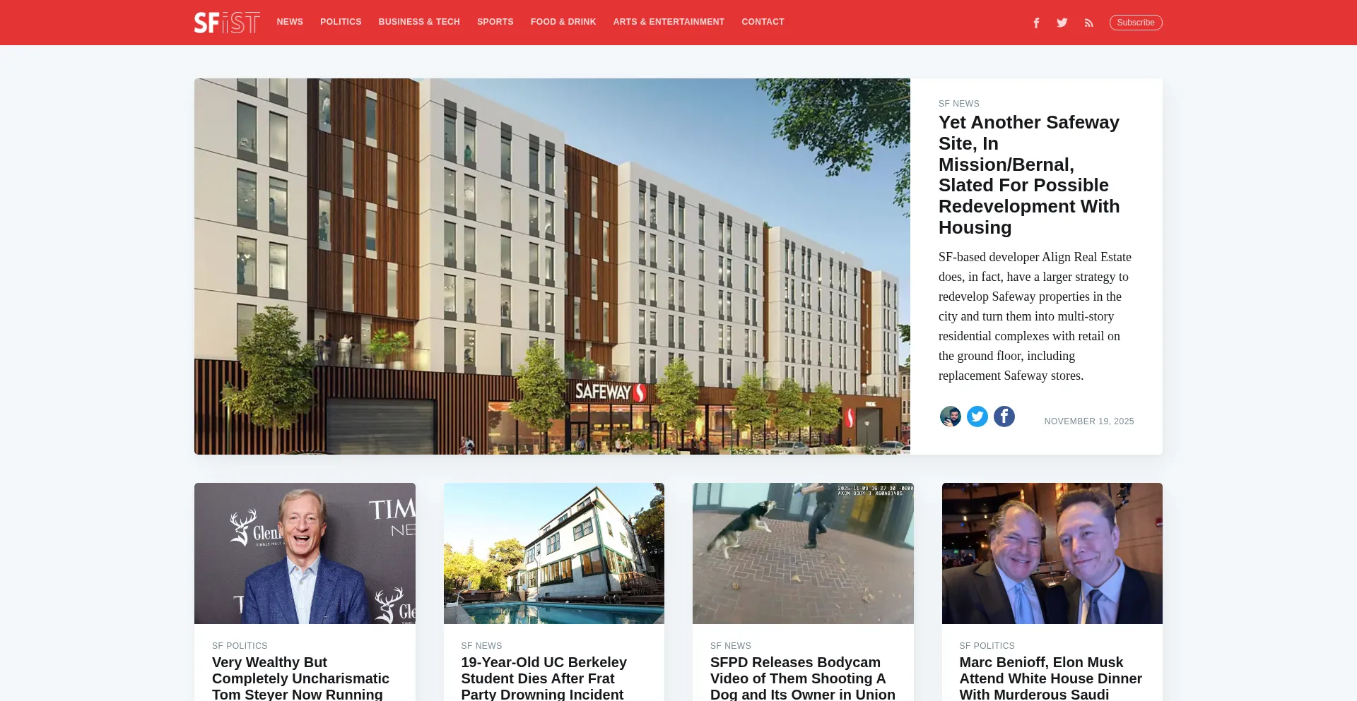 SFist is San Francisco's source for fun, witty, & serious news. With updates about restaurants, events, sports, politics & more, SFist reaches millions of users in California.