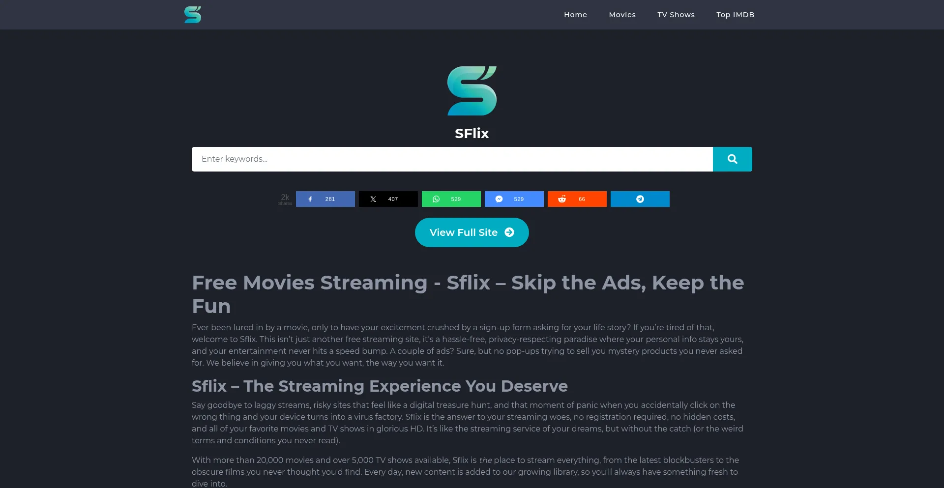 SFlix is the best website to Watch free movies and series HD online. Enjoy fast streaming the latest TV shows. Just click and enjoy full episodes!