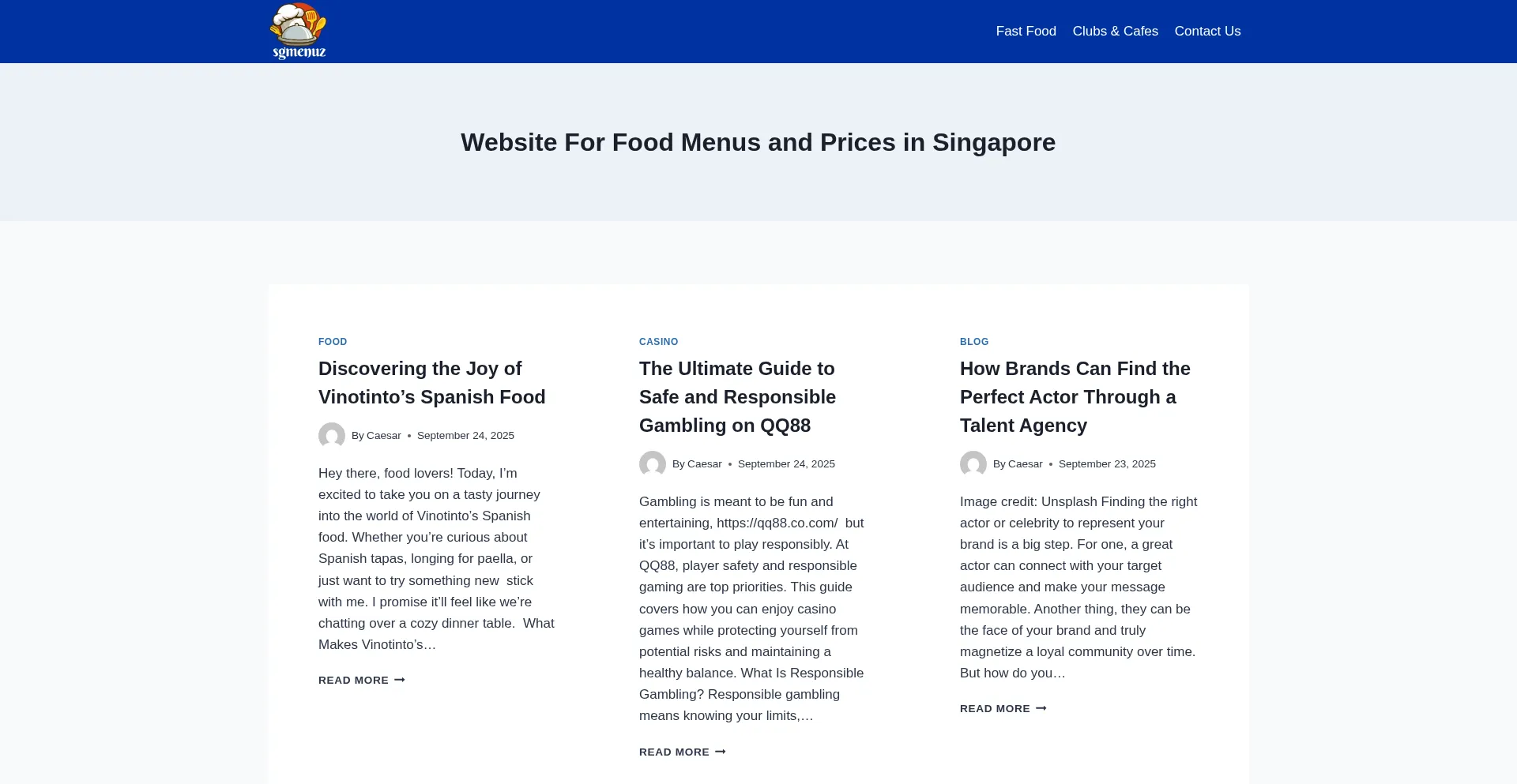 Website For Food Menus and Prices in Singapore