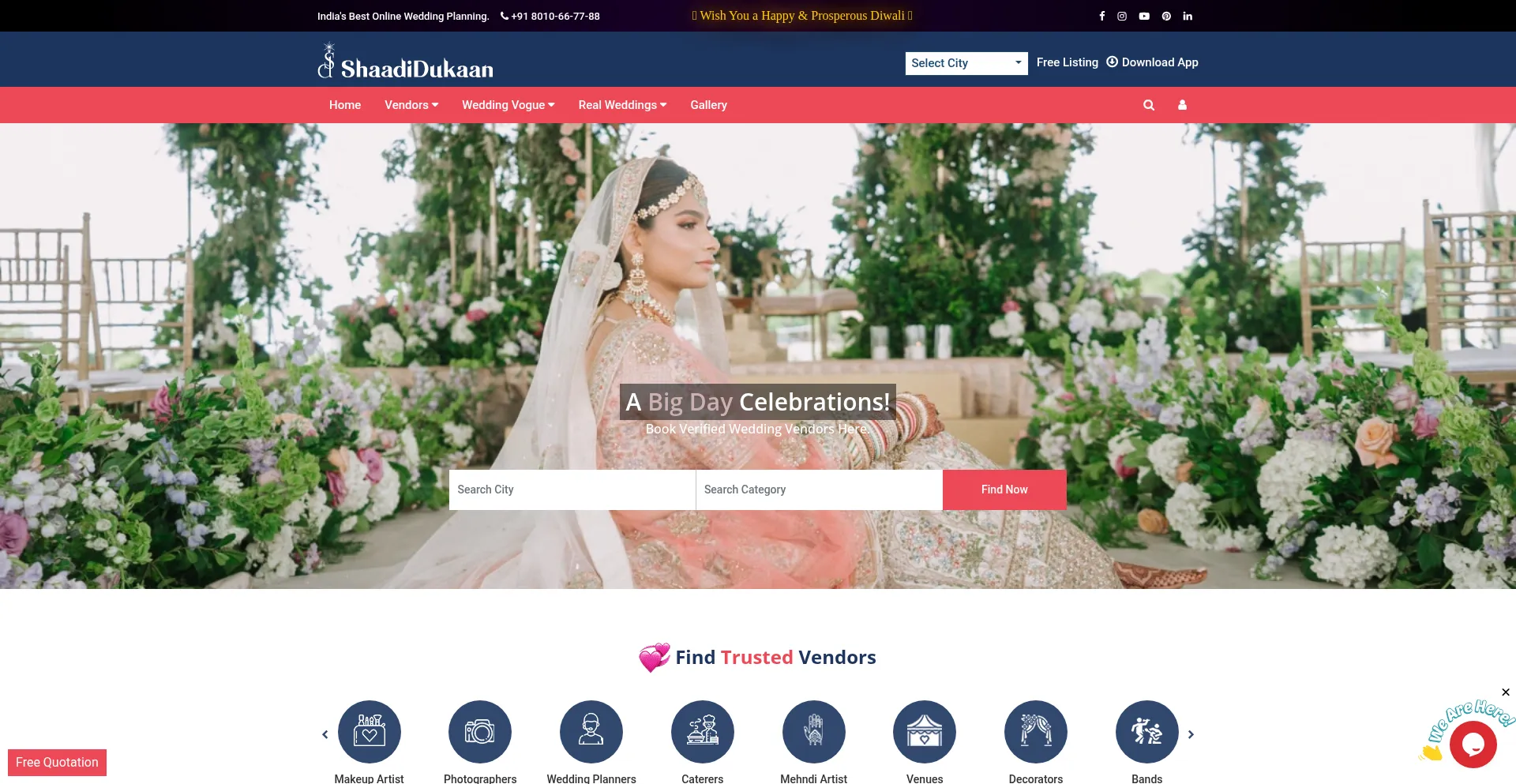 Shaadidukaan.com is India's top wedding planning website. Find top vendors for makeup, photography, decoration, mehendi... compare price, see reviews to book the best.