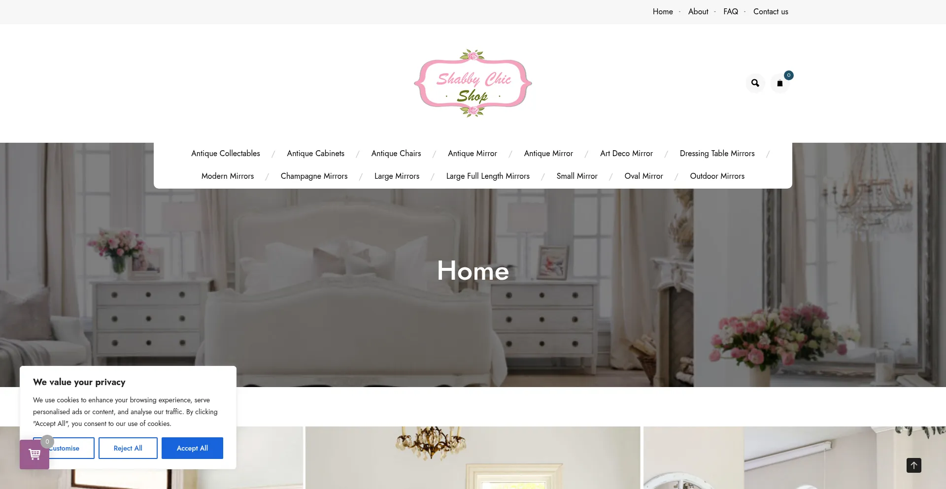 该网站实现符合GDPR或CCPA等隐私法规的cookie同意机制。这表明 shabbychicshop.co.uk 遵守数据保护标准并为用户提供对个人数据收集实践的控制。