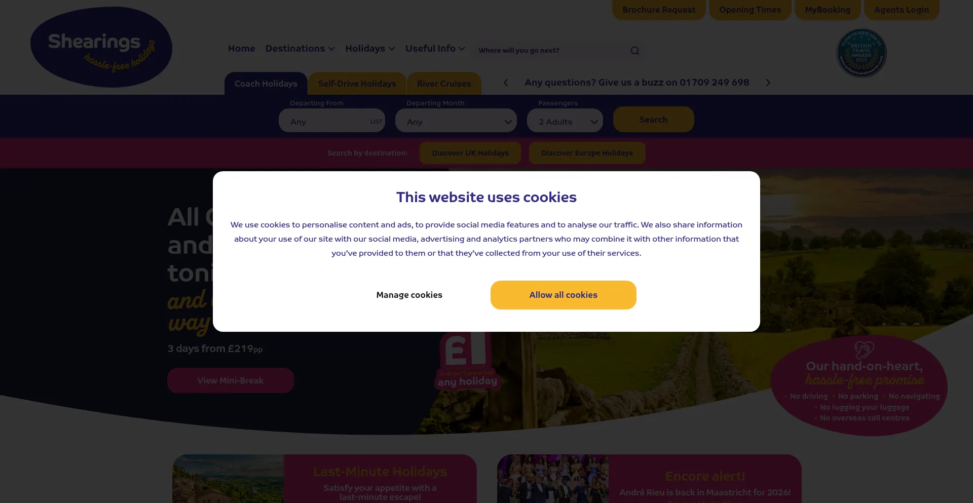 该网站实现符合GDPR或CCPA等隐私法规的cookie同意机制。这表明 shearings.com 遵守数据保护标准并为用户提供对个人数据收集实践的控制。