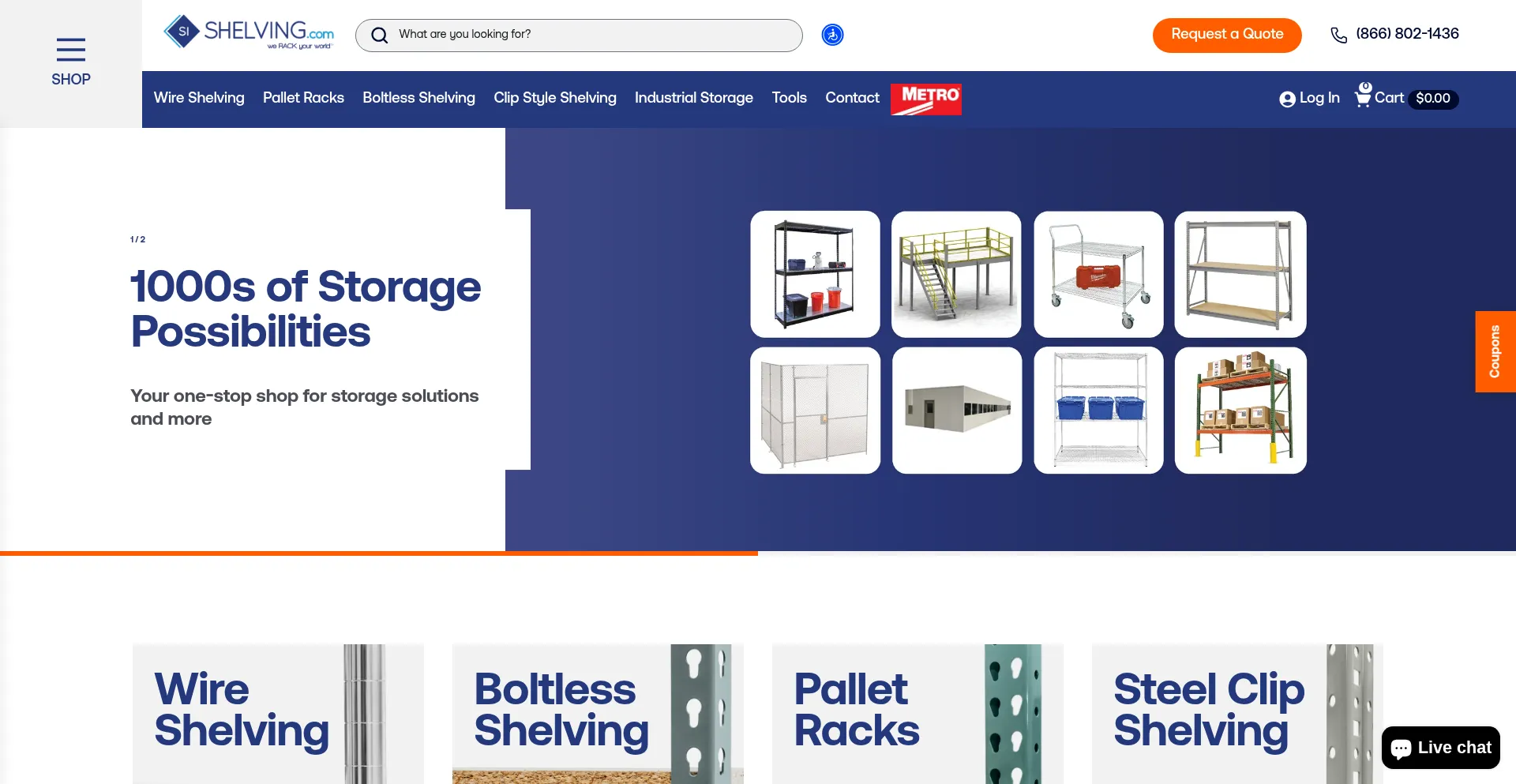分析表明 shelving.com 作为电子商务平台运营,促进商品或服务的在线交易。该网站实现了购物车功能、支付处理系统和产品目录功能,这些是商业零售运营的典型特征。