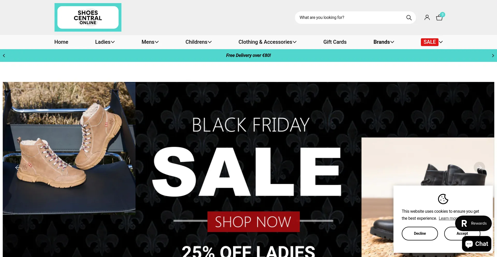 该网站实现符合GDPR或CCPA等隐私法规的cookie同意机制。这表明 shoescentralonline.com 遵守数据保护标准并为用户提供对个人数据收集实践的控制。