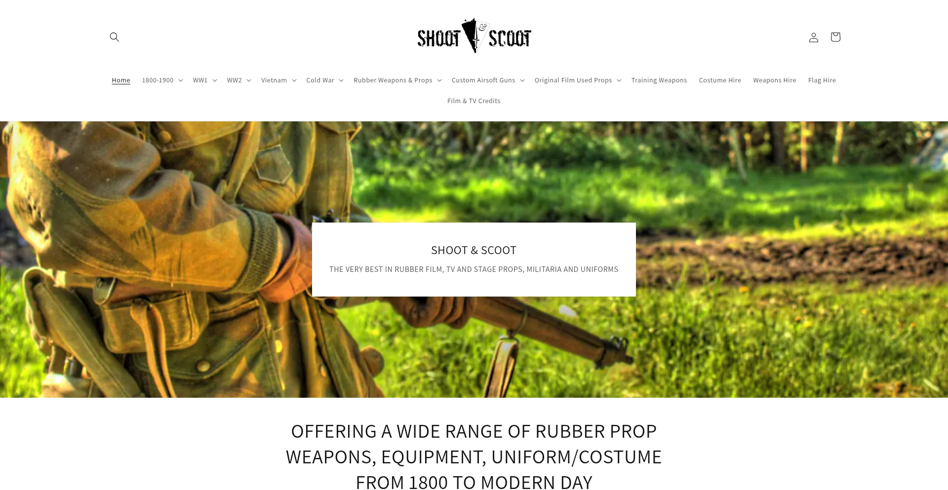 Offering a wide range of rubber prop weapons, equipment, uniforms and costumes from 1800 to Modern Day.