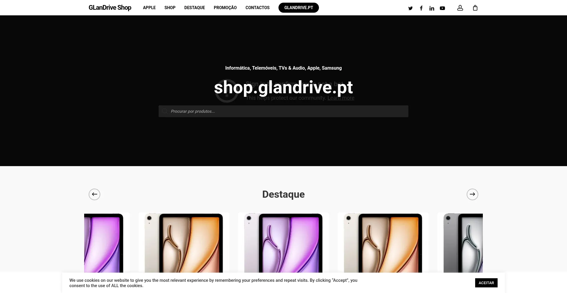 Líderes em produtos Apple. Informática, smartphones, portáteis, televisões e muito mais. As últimas novidades, disponíveis 24h em shop.glandrive.pt!