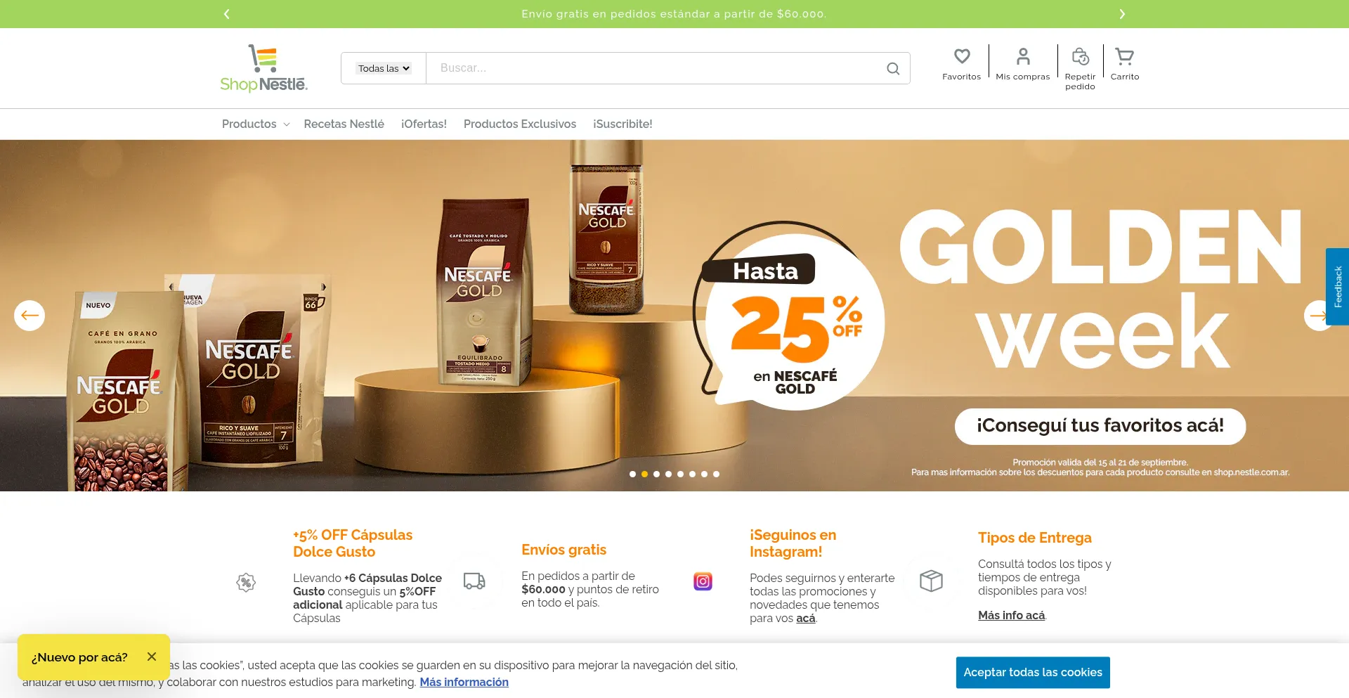 该网站实现符合GDPR或CCPA等隐私法规的cookie同意机制。这表明 shop.nestle.com.ar 遵守数据保护标准并为用户提供对个人数据收集实践的控制。