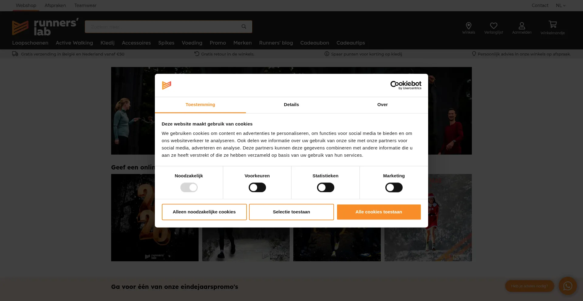 该网站实现符合GDPR或CCPA等隐私法规的cookie同意机制。这表明 shop.runnerslab.be 遵守数据保护标准并为用户提供对个人数据收集实践的控制。
