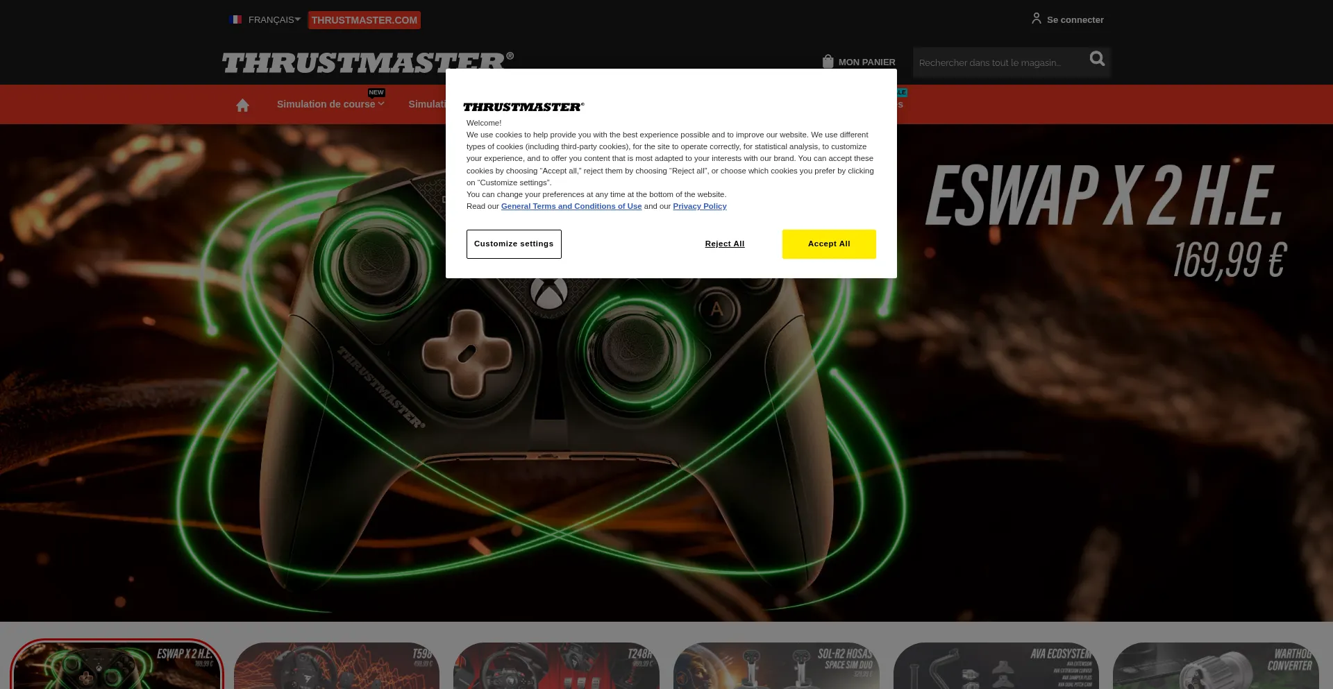 该网站实现符合GDPR或CCPA等隐私法规的cookie同意机制。这表明 shop.thrustmaster.com 遵守数据保护标准并为用户提供对个人数据收集实践的控制。