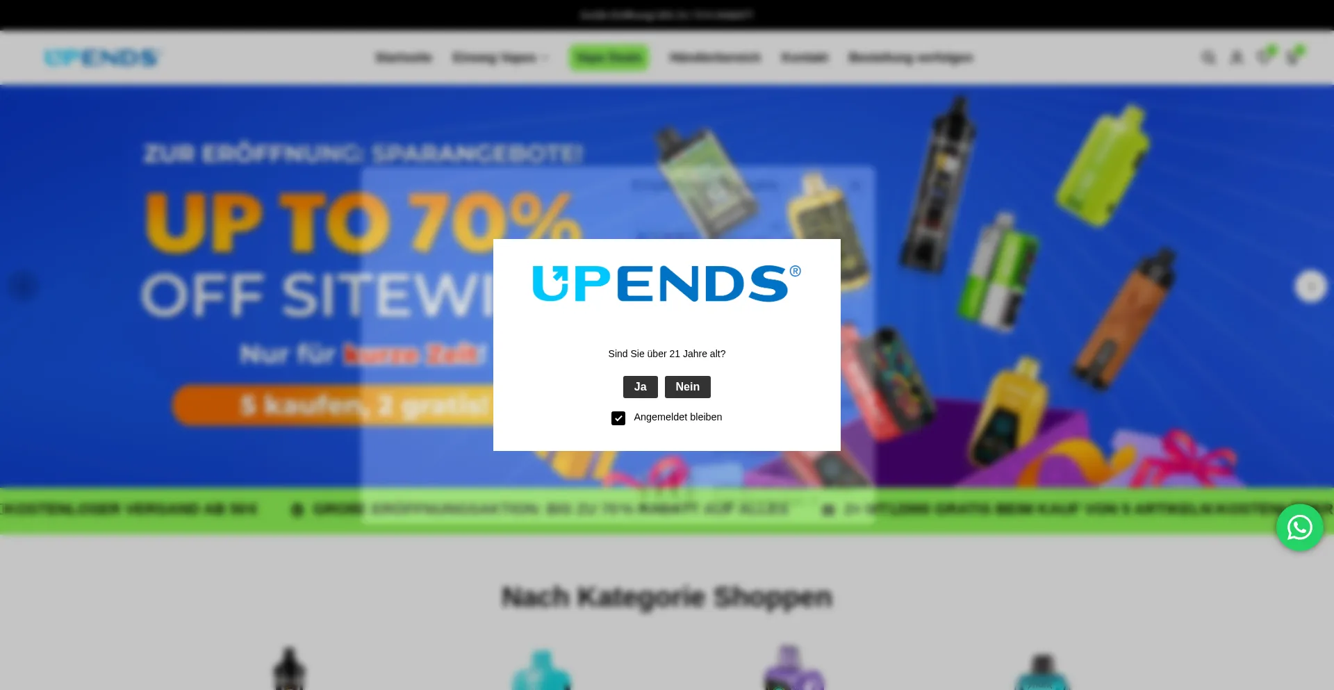 Shop-upends.de bietet hochwertige E-Zigaretten zum Top-Preis – aus deutschem Lager, mit DHL-Versand und 100 % Original-Garantie. Jetzt entdecken!