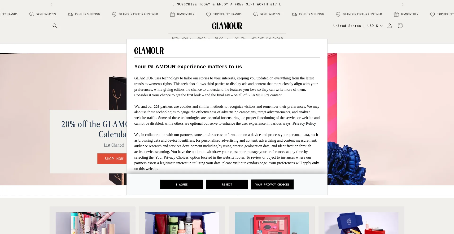 该网站实现数据收集表单,请求个人信息,包括姓名、电子邮件地址、电话号码或其他敏感详细信息。用户应验证 shopglamour.co.uk 的合法性并在提交个人数据前查看隐私政策。