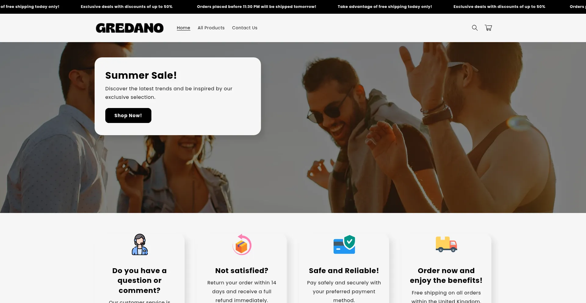 网站 shopgredano.com 使用免费电子商务平台解决方案,这可能表明成本意识运营,但也可能暗示与企业级解决方案相比在安全功能、客户支持或高级功能方面的限制。