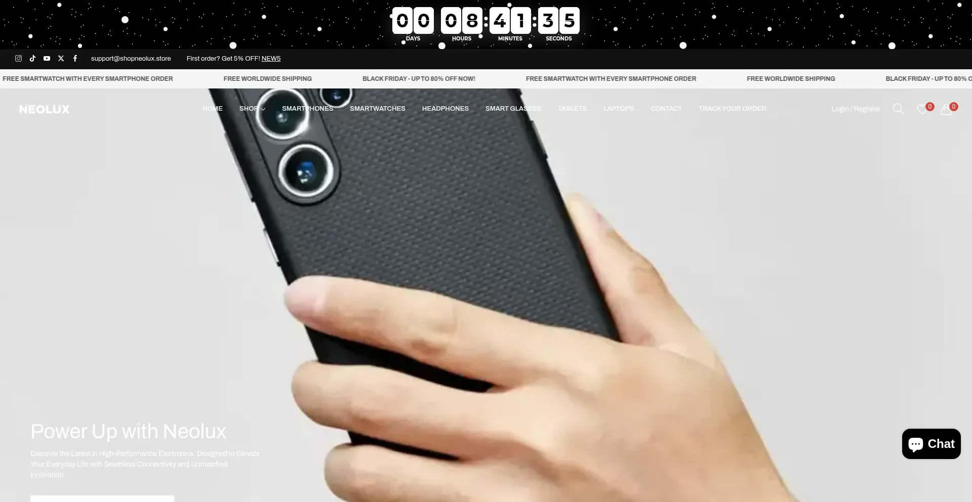 网站 shopneolux.store 使用免费电子商务平台解决方案,这可能表明成本意识运营,但也可能暗示与企业级解决方案相比在安全功能、客户支持或高级功能方面的限制。