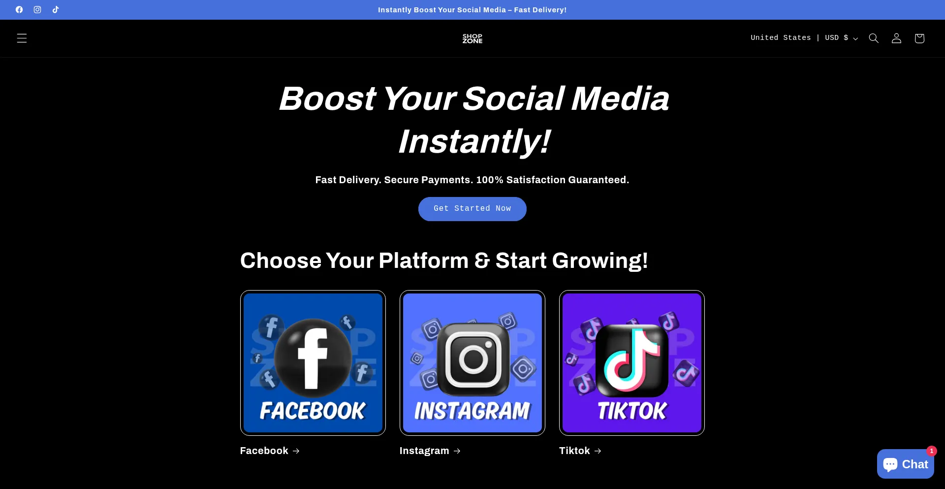 网站上存在社交媒体链接表明 shopzoneg.store 在社交媒体上维护官方账户,这是可信度和参与度的积极信号。