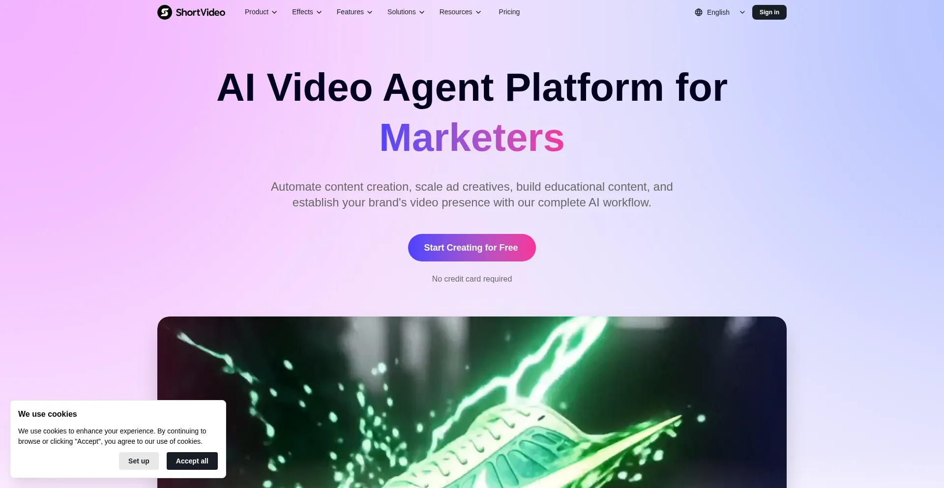 该网站实现符合GDPR或CCPA等隐私法规的cookie同意机制。这表明 shortvideo.ai 遵守数据保护标准并为用户提供对个人数据收集实践的控制。