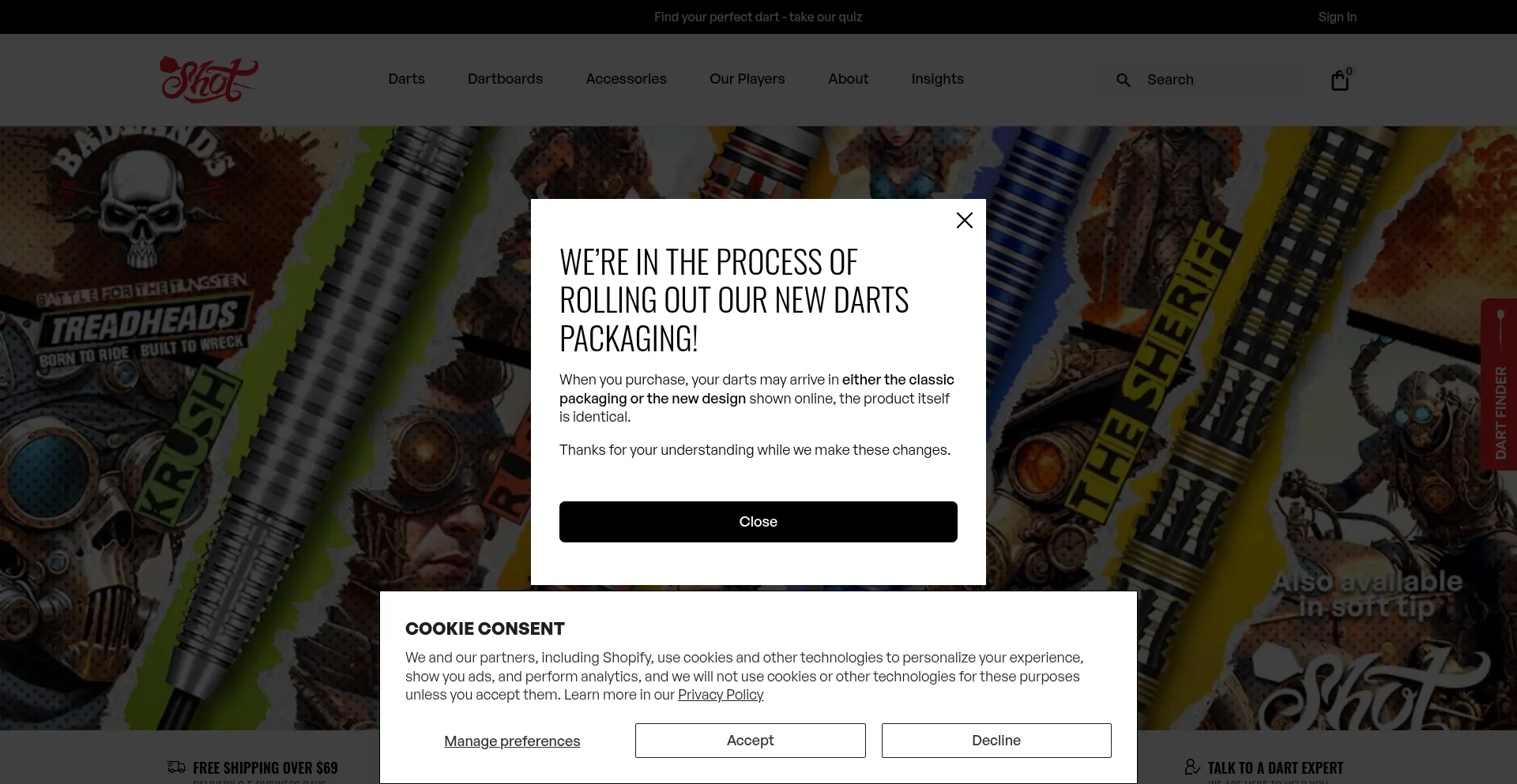 shotdarts.com 使用 Google Tag Manager 在其网站上添加和更新追踪代码(标签)。