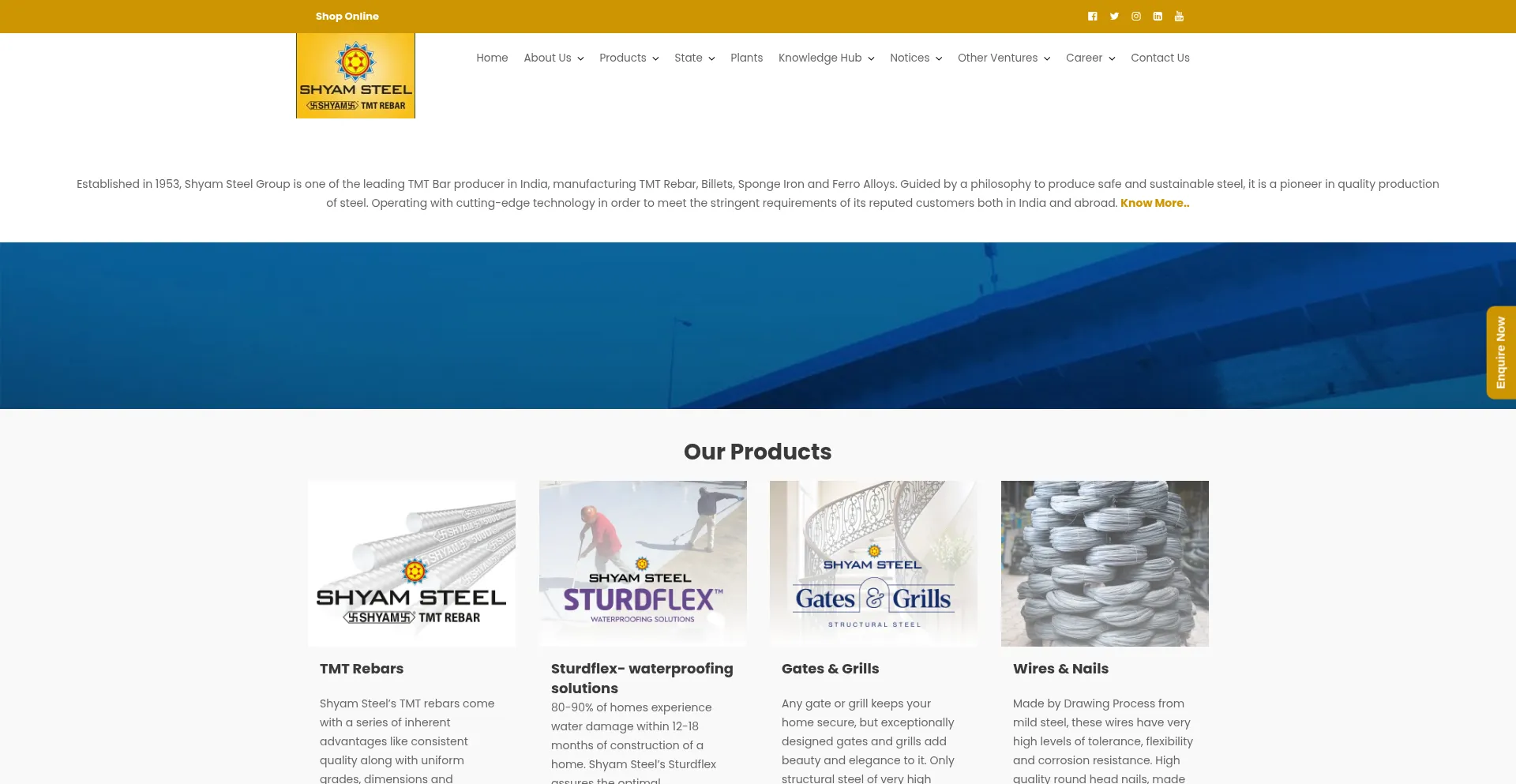 网站上存在社交媒体链接表明 shyamsteel.com 在社交媒体上维护官方账户,这是可信度和参与度的积极信号。