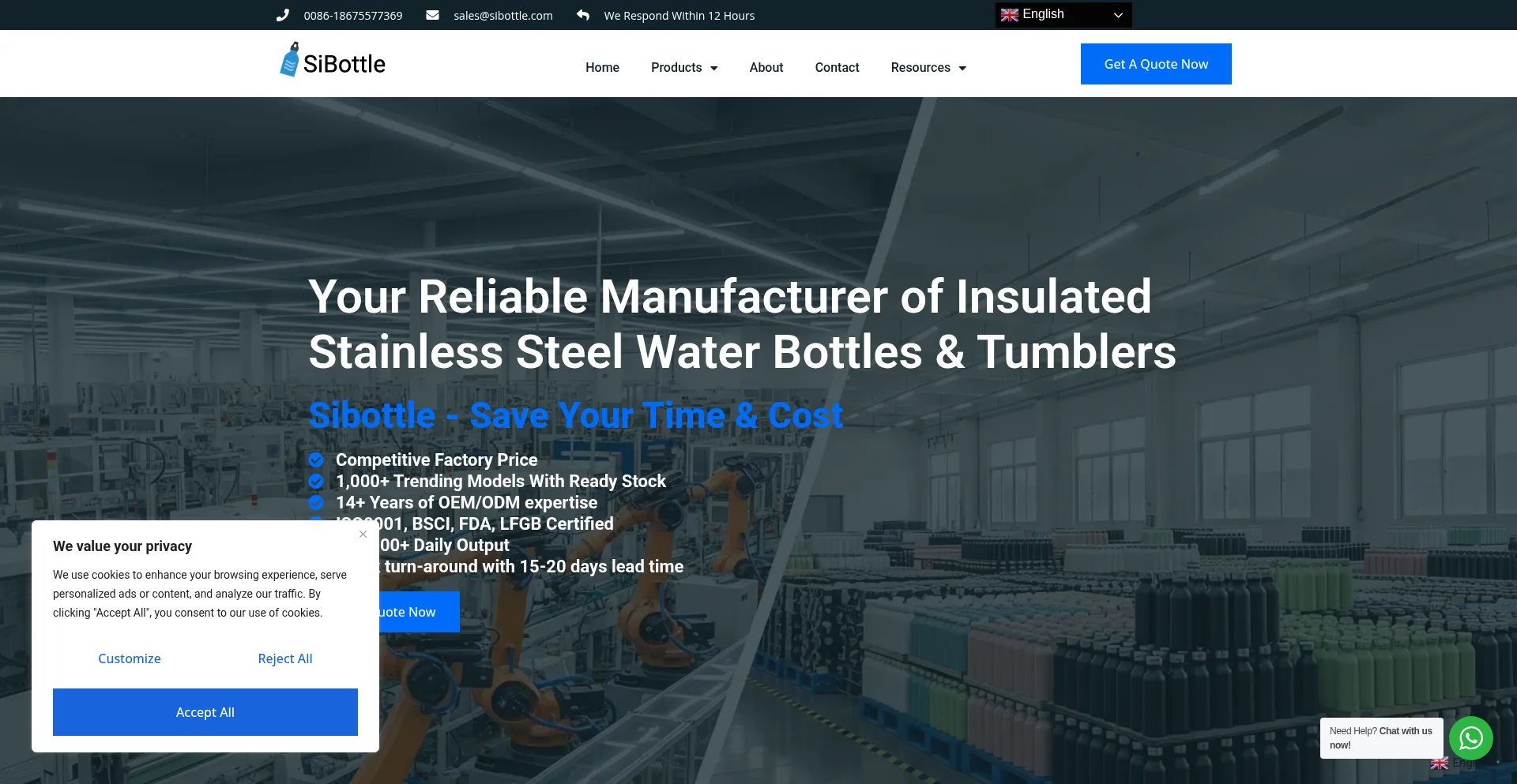 该网站实现符合GDPR或CCPA等隐私法规的cookie同意机制。这表明 sibottle.com 遵守数据保护标准并为用户提供对个人数据收集实践的控制。